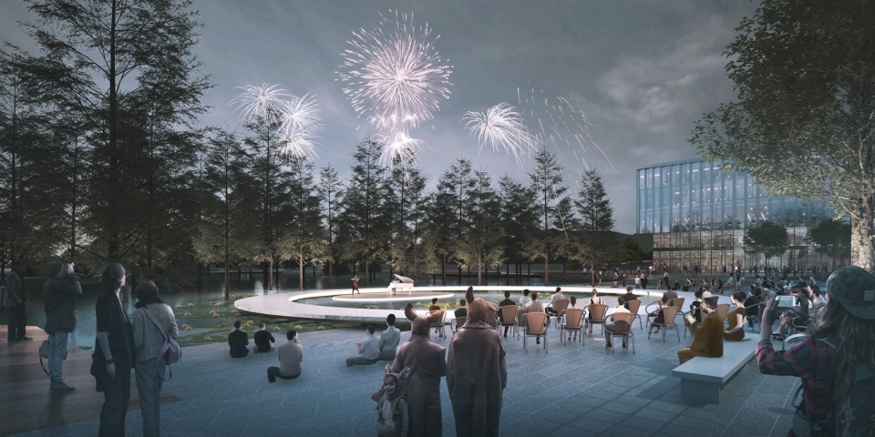 云湖也成为园区文化场所,可以静思、冥想,也可以作为水上演出和庆典的空间。