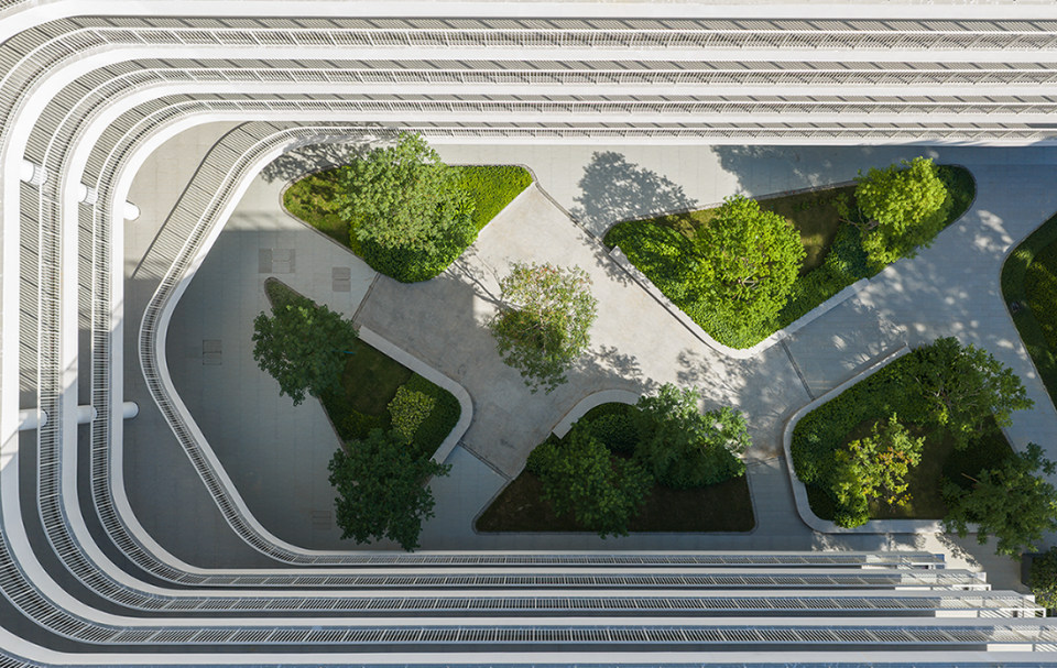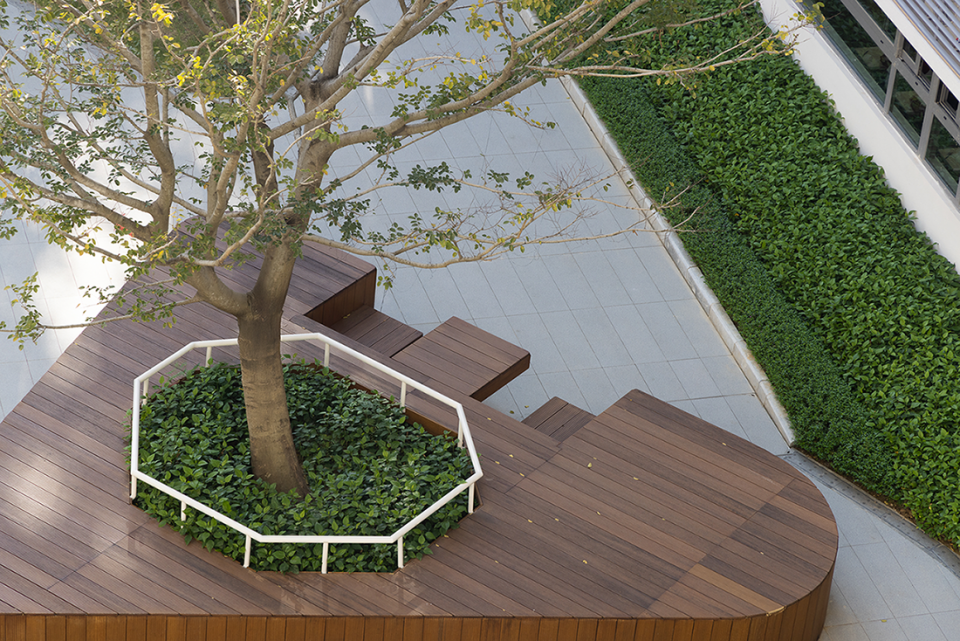 通过多维度策略回应了高密度环境:1、1-3 层” 树下” 空间完整连续,自由灵活;2、线性空间多维高效串联,空间层次丰富多变;3、水平与纵向功能分布明确,利于分区和分层,强化主题;4、边界空间配合整体规划, 强化立面展示, 利用自然属性与城市融合。呼唤景观作为关键媒介,去进一步消融内外边界,并将建筑所预设的空间逻辑,转化为更具温度与生命力的流动体验。