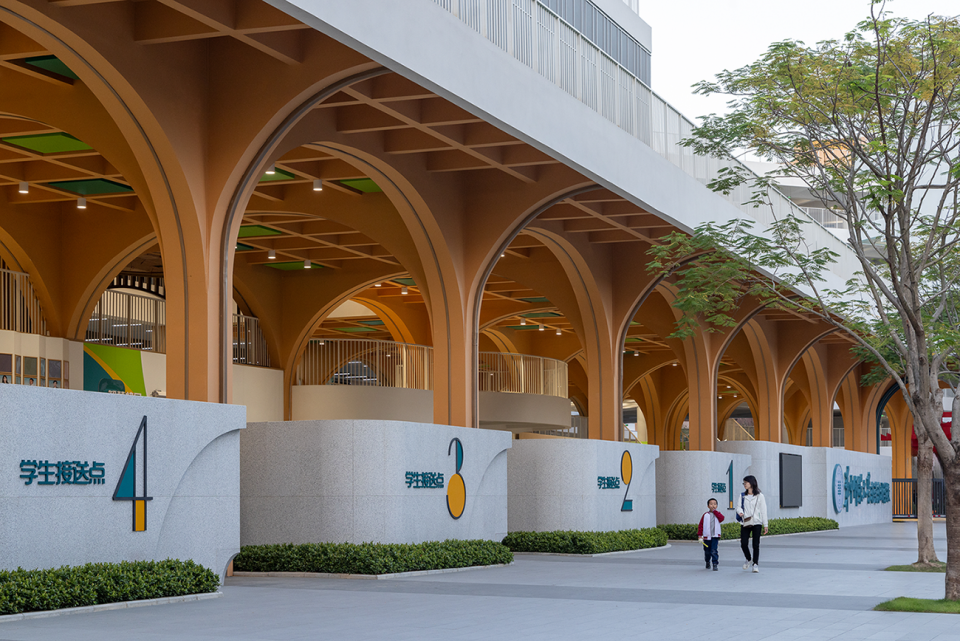 Faced with a cramped and overloaded drop-off/pick-up area exposed to the street, a “Time Corridor” transforms this negative boundary space into a safe, orderly, and welcoming space. By incorporating an artistically designed wall with a sense of sequence, the school dismissal waiting area and parent pick-up/pick-up area are clearly demarcated, effectively managing pedestrian and non-motorized vehicle traffic. The waiting seats and pick-up/pick-up entrances integrated into the wall provide parents with a more humane drop-off/pick-up experience.