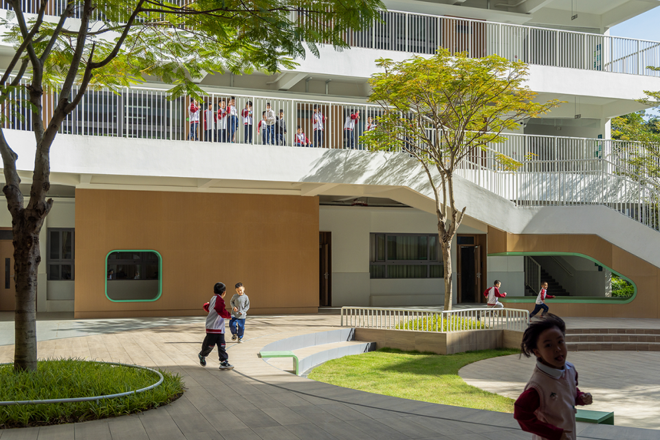 In the context of high-density urban renewal, basic education spaces are often compressed into isolated functional units. How to revitalize these spaces and restore their natural and educational value has become a crucial issue for contemporary design. DONGGUAN DONGCHENG SCHOOL AFFILIATED TO CENTRAL CHINA NORMAL UNIVERSITY is at the forefront of this challenge. We view the landscape as a flowing link, designing it to serve teachers and students while simultaneously serving as a public spiritual base that activates community emergency response and ecological resources.