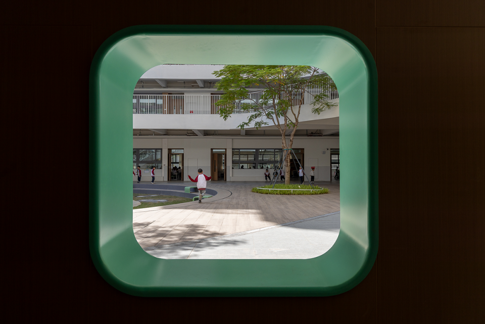 The courtyard, which faces the first-grade classrooms on the first floor, has been transformed into an “Enlightenment Garden” themed around plant recognition. Targeting the children’s strong curiosity and perception at this age, the garden becomes a natural classroom extending outdoors, allowing learning to occur naturally through exploration and interaction, lighting the first “leaf of enlightenment” for young learners.