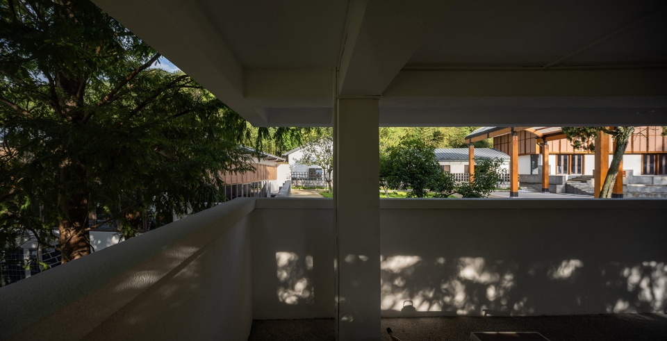 Because of the substantial level differences within the camp, the three building clusters sit on terraces at different elevations, and their relationships have become distant and fragmented as sightlines are cut and blocked. As the spatial center of the site and the only building whose primary structure was permitted to be altered, the pavilion became the first candidate for vertical extension—and indeed for an additional two levels—so that it could be seen from each of the principal buildings. In this way, it could serve both as a visual focal point that draws the surrounding buildings into a tighter ensemble, and as a lookout from which to “survey” every corner of the camp.