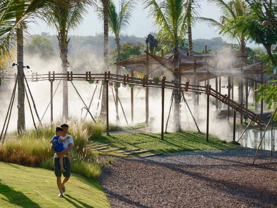 ▼穿梭在园区雾森中的小朋友,Children Moving Through the Misting System in the Park