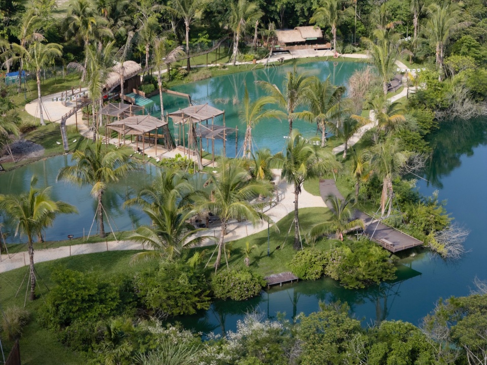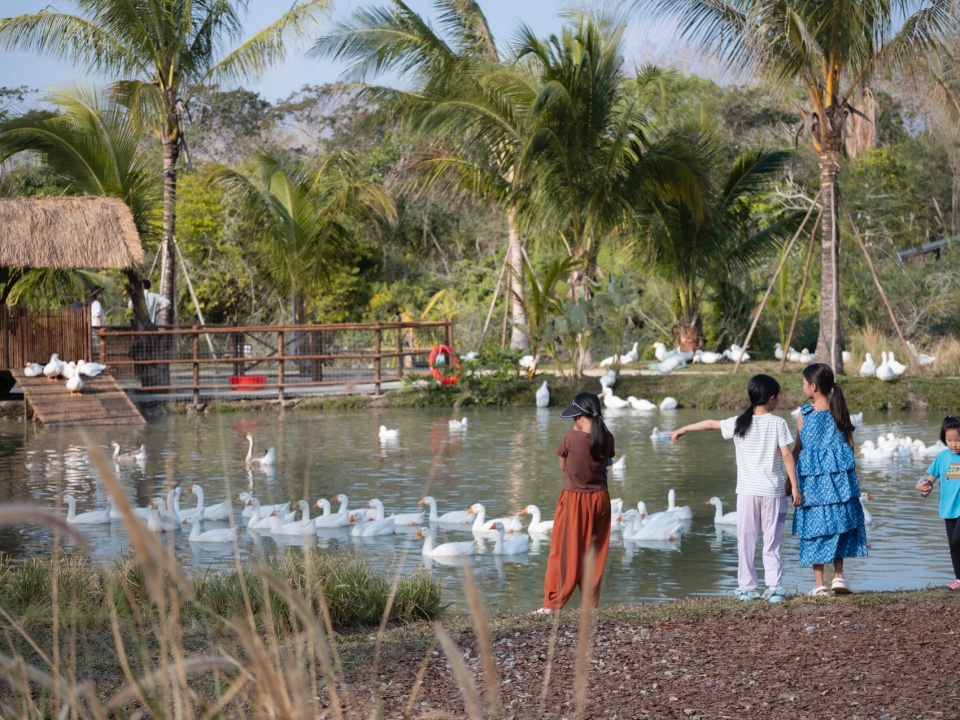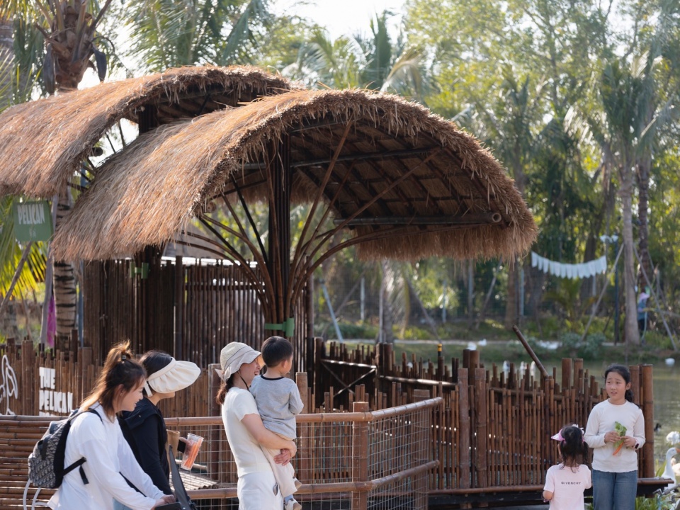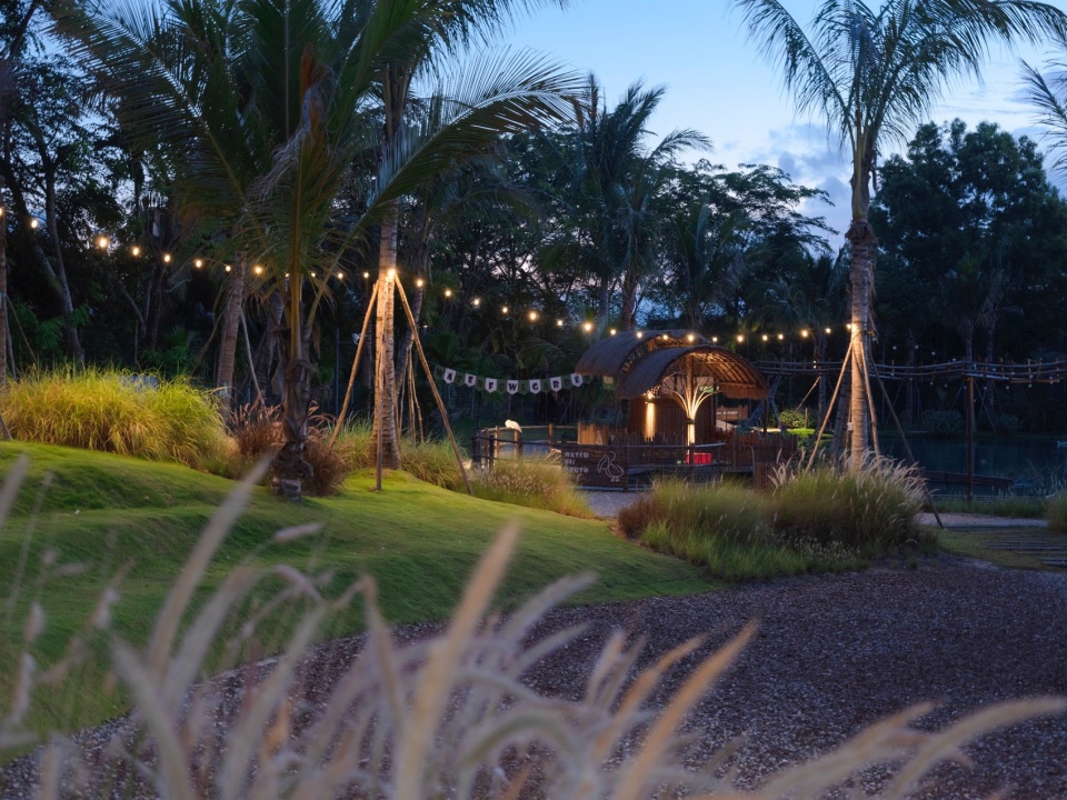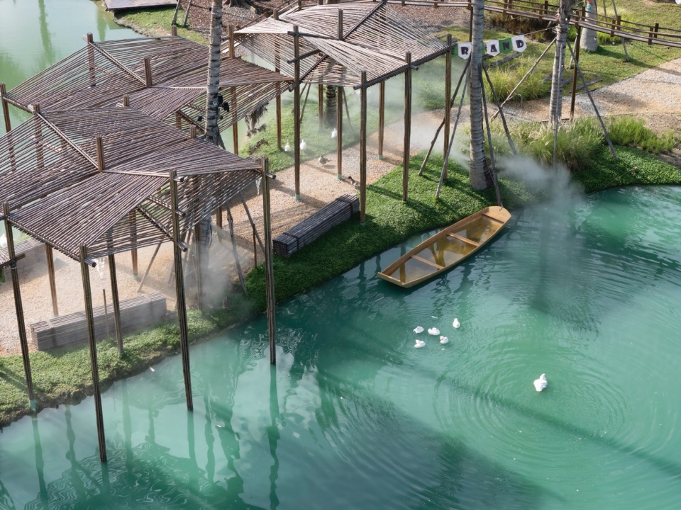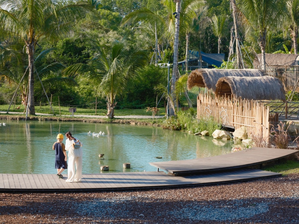 The project is located on the bank of Beitou Reservoir in Wanning, directly across the road from the Luxe form, which was completed and began operations previously. Within this coconut grove, the plan is to utilize the natural pits and ponds to create three “Water Bird Parks” of varying sizes. Another pond will feature various dining and interactive businesses arranged around the water, connecting all the under-forest leisure spaces. This layout echoes the Luxe form on the slope, forming an island jungle wilderness destination that integrates characteristic Nanyang restaurants, water sports, parent-child study tours, leisure vacations, and cultural socializing.