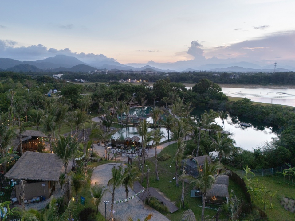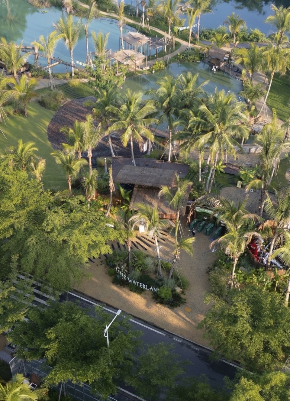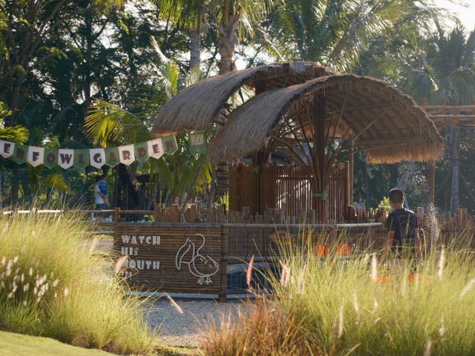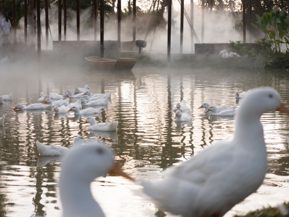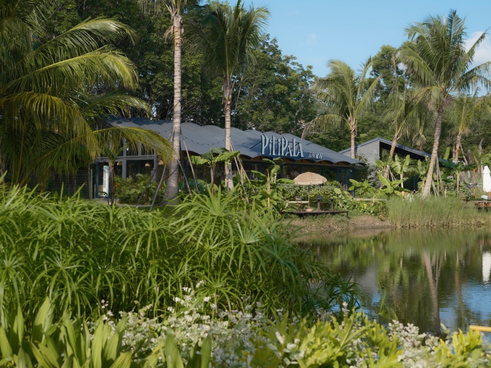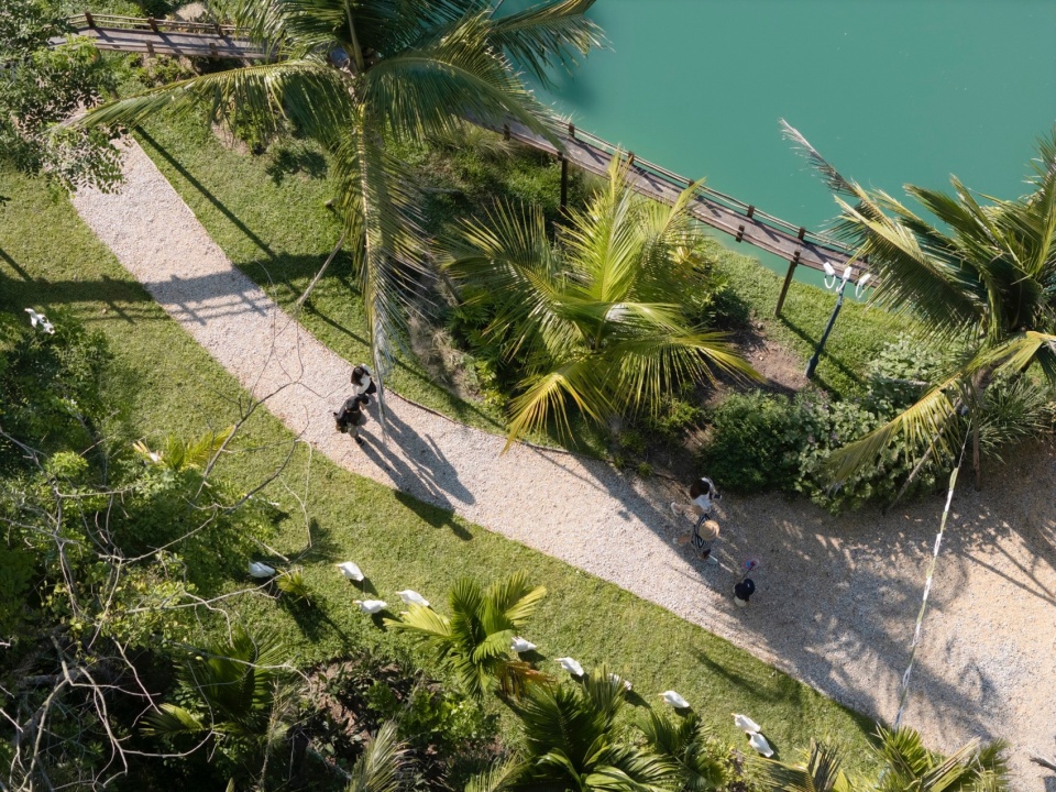 The project is located on the bank of Beitou Reservoir in Wanning, directly across the road from the Luxe form, which was completed and began operations previously. Within this coconut grove, the plan is to utilize the natural pits and ponds to create three “Water Bird Parks” of varying sizes. Another pond will feature various dining and interactive businesses arranged around the water, connecting all the under-forest leisure spaces. This layout echoes the Luxe form on the slope, forming an island jungle wilderness destination that integrates characteristic Nanyang restaurants, water sports, parent-child study tours, leisure vacations, and cultural socializing.