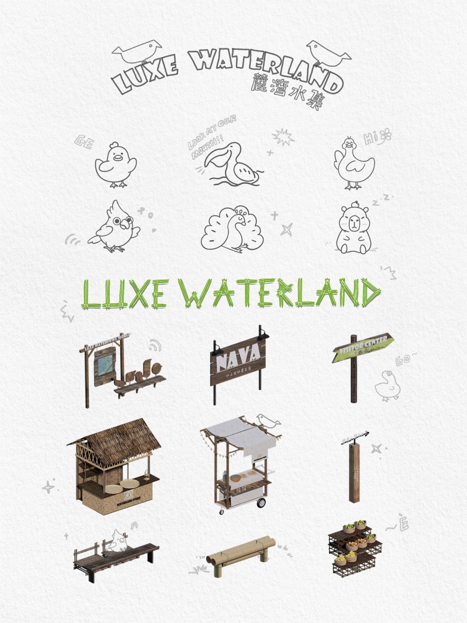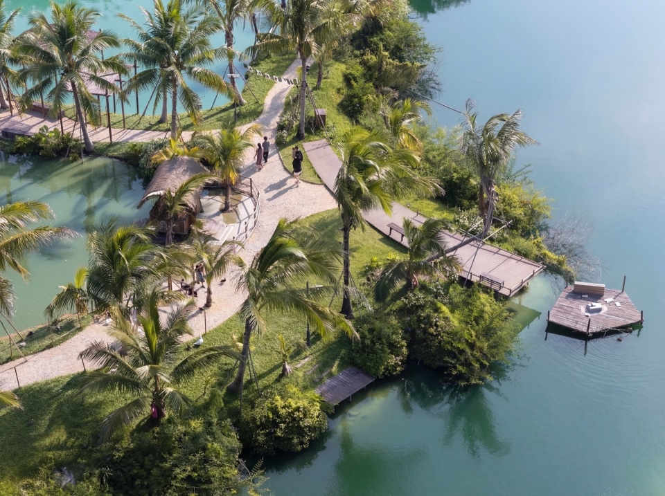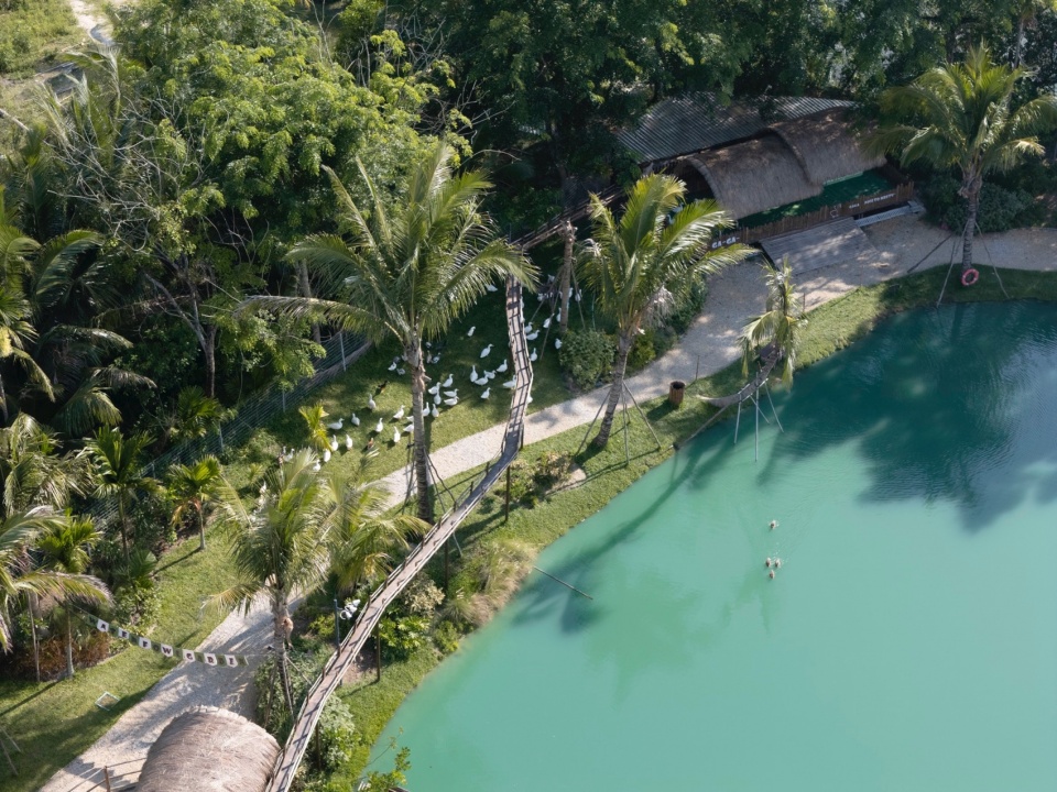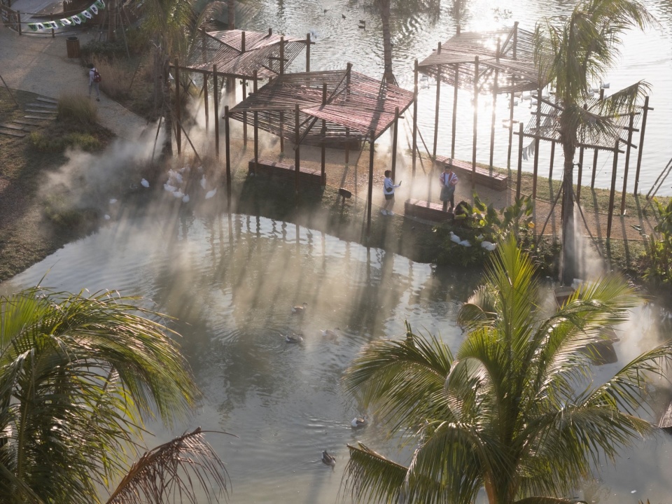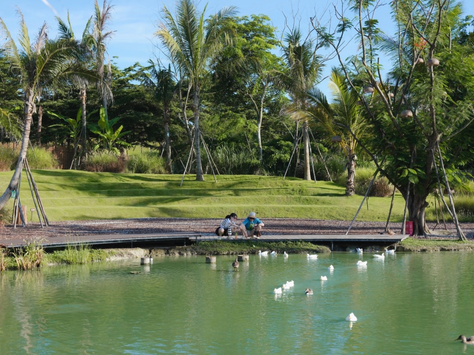 The project is located on the bank of Beitou Reservoir in Wanning, directly across the road from the Luxe form, which was completed and began operations previously. Within this coconut grove, the plan is to utilize the natural pits and ponds to create three “Water Bird Parks” of varying sizes. Another pond will feature various dining and interactive businesses arranged around the water, connecting all the under-forest leisure spaces. This layout echoes the Luxe form on the slope, forming an island jungle wilderness destination that integrates characteristic Nanyang restaurants, water sports, parent-child study tours, leisure vacations, and cultural socializing.