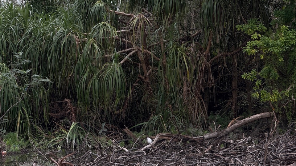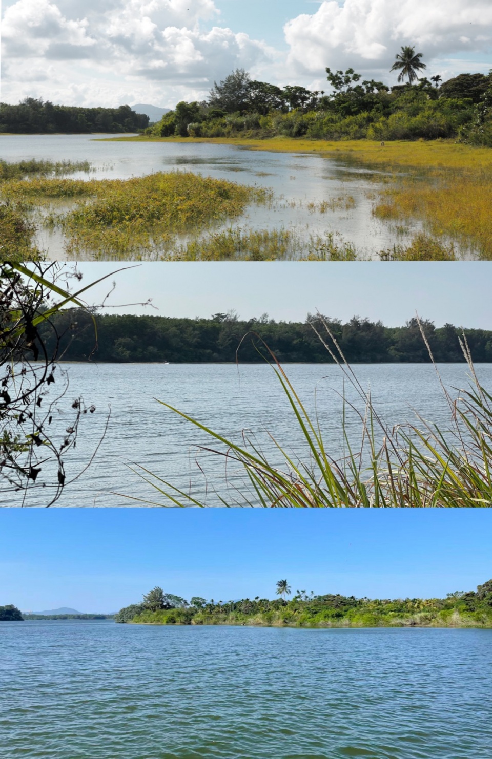Several puddles in the coconut grove adjacent to the reservoir drew us in for exploration. The circular dense forest, rich in tropical style, greatly resembled ecological islands jutting out into the reservoir, full of wonder and imagination. The reservoir connected to these puddles is a flood control and irrigation reservoir in Wanning, constructed in the 1970s. According to existing records, its water level varies significantly during the same historical periods, resulting in alternately deep water and mudflats near the shore.