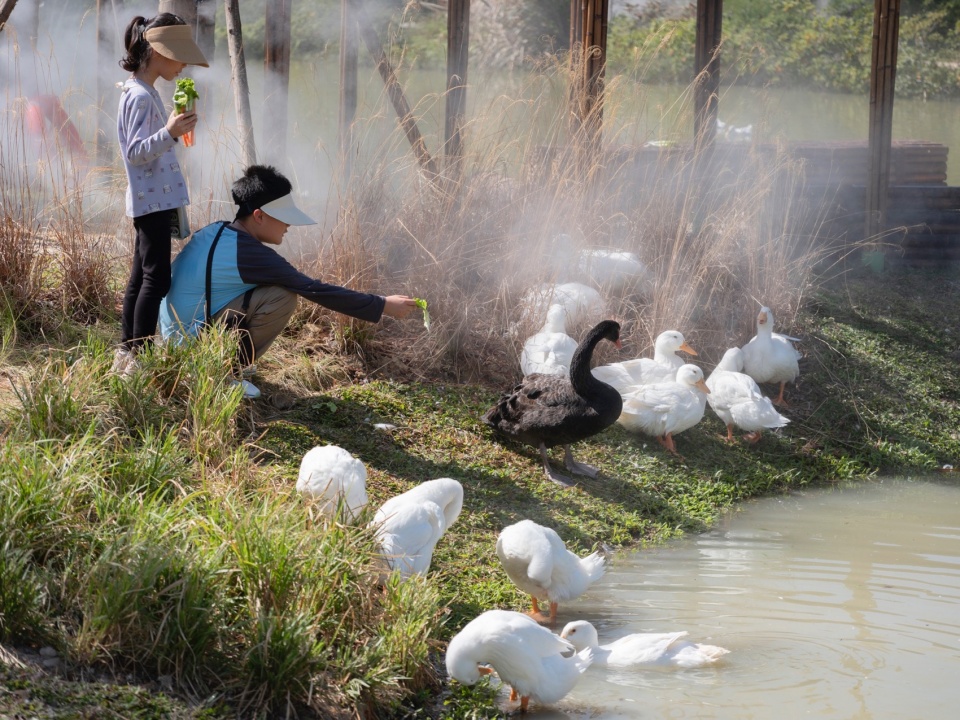 The waterfowl are highly dependent on water bodies and are skilled at swimming, walking, and flying. To ensure they live well in the park, the three ponds are situated adjacent to each other and connected by natural paths, with the “homes” of different animal species arranged around the water. Of course, they occasionally visit each other, and sometimes even stroll grandly to the park entrance to see which humans have come to visit their homes today.