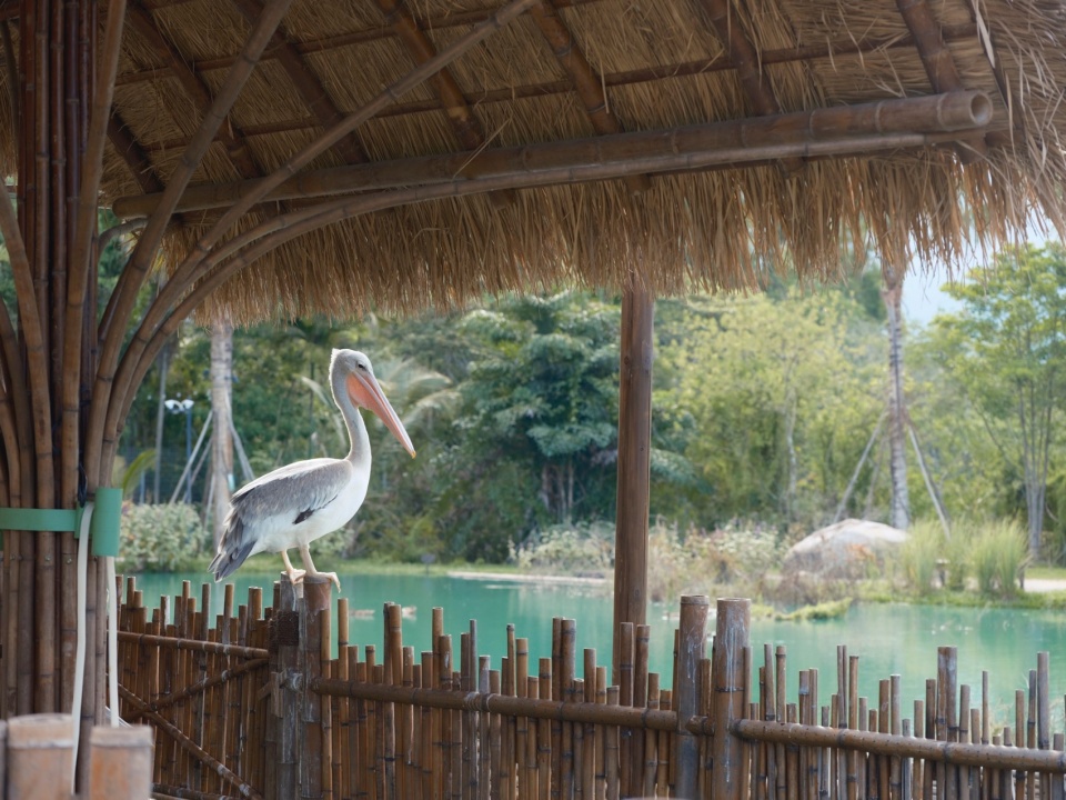 ▼鹈鹕在棚圈内望向湖面,Pelicans Looking Towards the Lake from Inside the Enclosure
