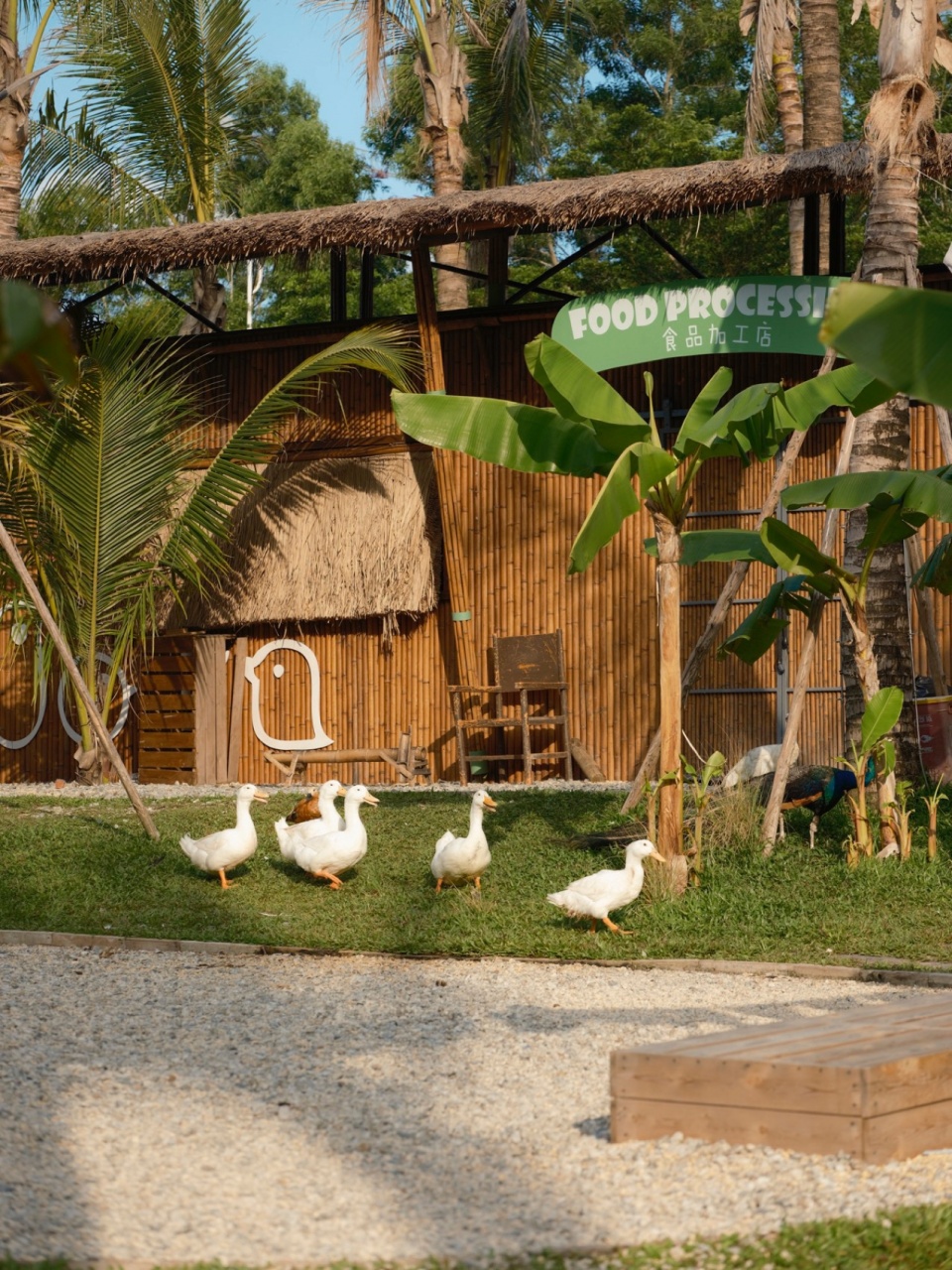 我们为园区水禽设计了几种不同户型的“家”,有独栋,有公寓,有大宿舍,丰俭由禽。还为他们配备了食堂、小卖部,保证食物加工、备餐灯,医疗后勤兼顾的后勤保障。时而有不同的小动物们踱步到食品加工店门口去闲适的逛逛。