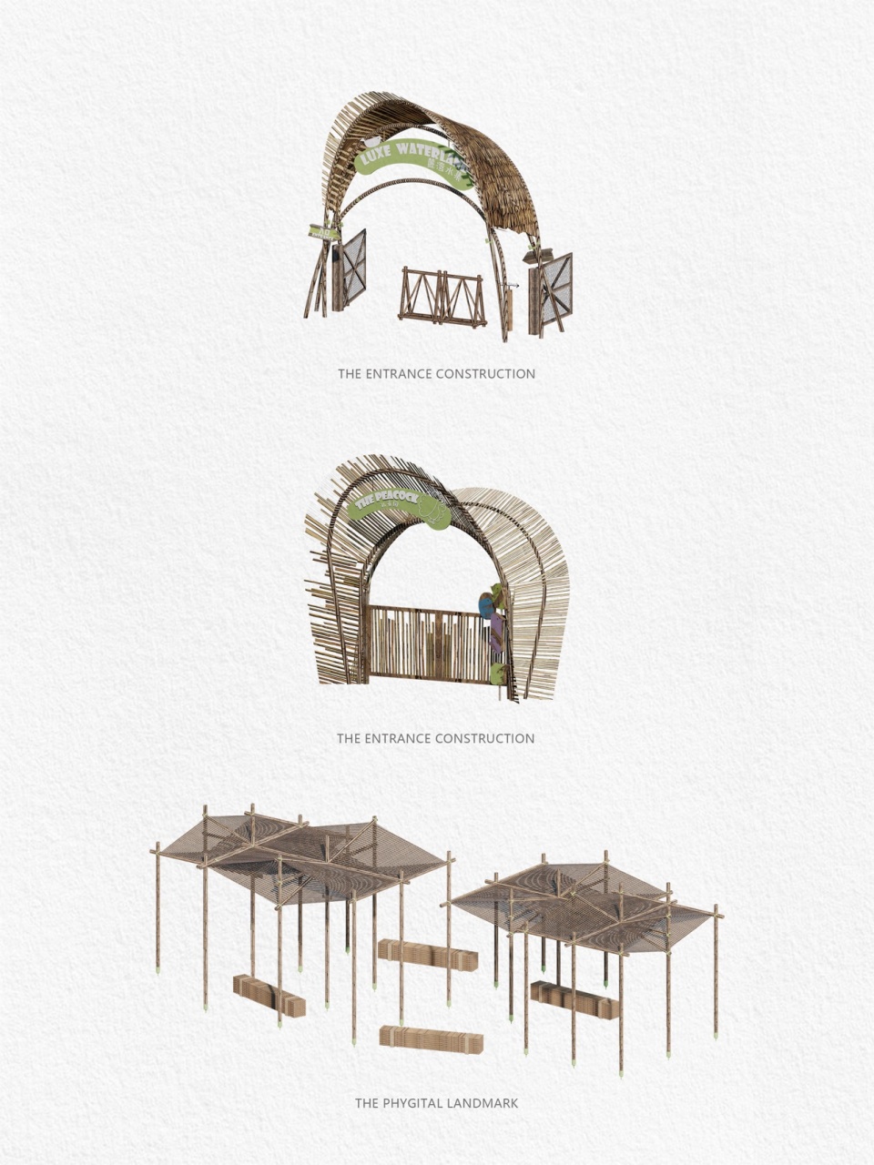 In this site design, after studying various materials and structural forms, we selected bamboo as the main material due to its portability, suitability for shaping, and its eco-friendly durability. In terms of details, we also attempted to use colored steel structures to enhance stability and fine detailing, serving as elements of designed aesthetics within the wilderness setting. By utilizing local elements for design and construction, we endeavored to uphold the principle of low-intervention design, inheriting local traditions and allowing new and old craftsmanship to intertwine continuously.