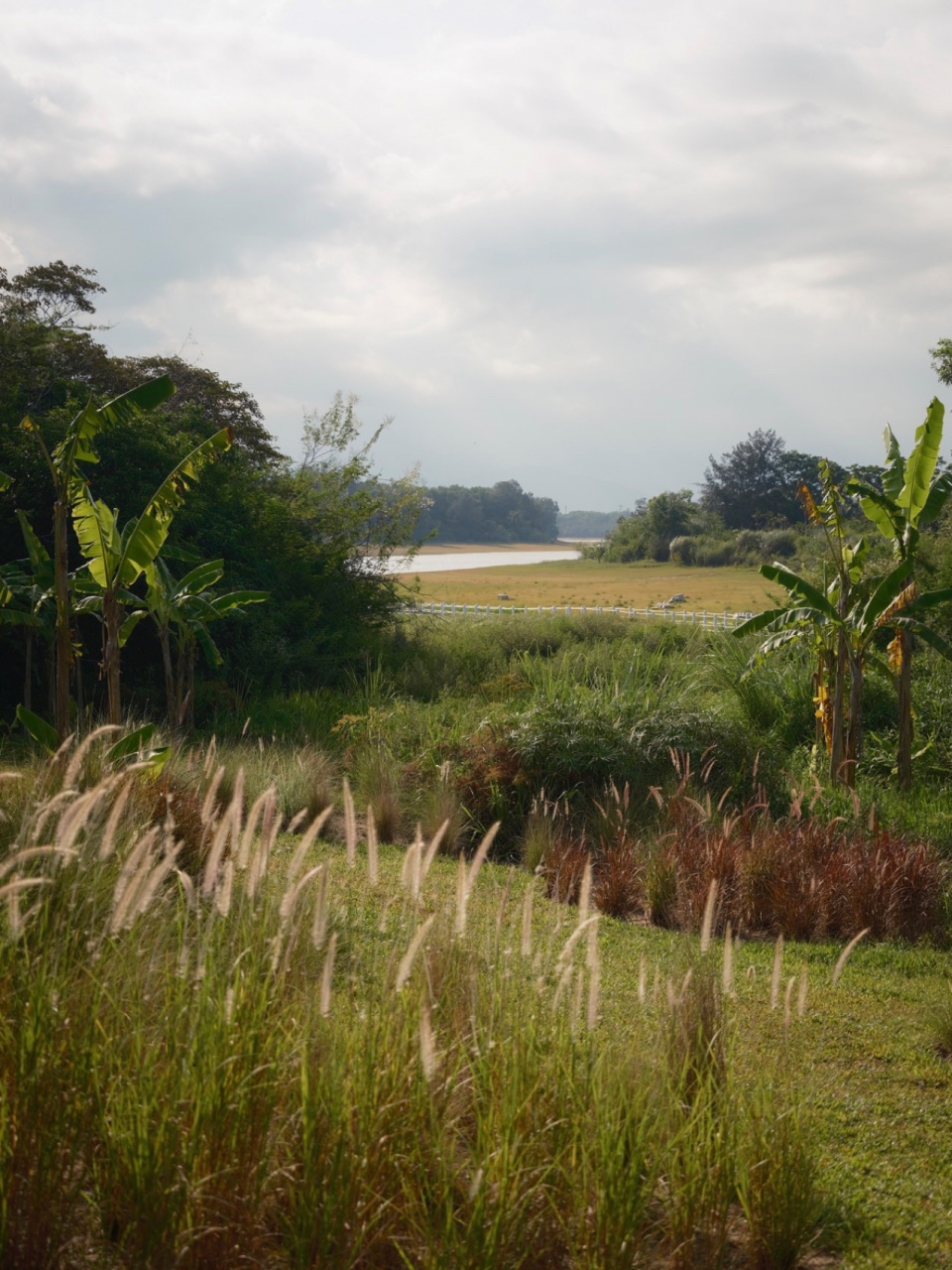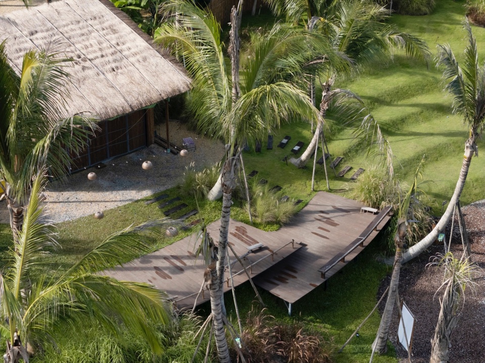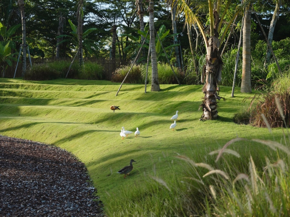 Native plant species are abundant throughout the entire area. The extensively managed economic rubber plantation at the site’s boundary has already developed a distinctly naturalized, wild state, with various wild or indigenous plants spreading and competing in their appropriate ecological niches, creating lush integration. Therefore, the goal of our planting design became to preserve and utilize the existing wild vegetation, restoring the unique character of local coconut grove villages. Structurally, we used the established rubber forest as a backdrop, simulating the form of local villages where coconut groves are scattered within. For plant species, we selected varieties like Pandanus (screw pine), which closely resemble the existing community and can blend perfectly with the current environment. We hope that within this vibrant setting, we can achieve the integration of the local nature and transition into the future with greater resilience.