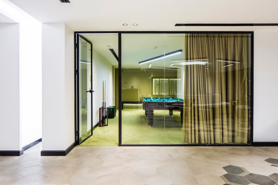 项目在郁郁葱葱的绿色环境中设置了客房套间、会议与联合办公空间、泳池、健身区、休憩区以及露台烧烤空间,以促进社区内部的社交生活。通过优化空间组织,最大化私密空间的使用效率,并在首层辅以客房套间,同时在屋顶露台层引入第二层共享空间。以整体化设计理念为引导,项目打造了一处与城市相融合的花园层,提供涵盖健康、运动、个人与社交活动的多元空间,包括运动场地、桑拿、泳池、酒吧、休息区与观景露台,营造出从建筑各处皆可抵达的宜人使用环境。