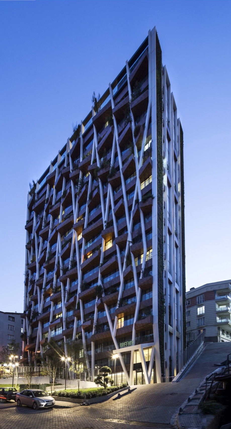 Greenox Urban Residence is located within an urban regeneration zone on the European side of Istanbul, where existing buildings on the secondary frontage of Levent Büyükdere Avenue are being redeveloped as part of a comprehensive transformation process. In response to the increasing concretization of Istanbul and the growing need of city-center residents for greenery and oxygen, Greenox Residence was conceived as a living organism that respects nature and uses energy and water resources efficiently.