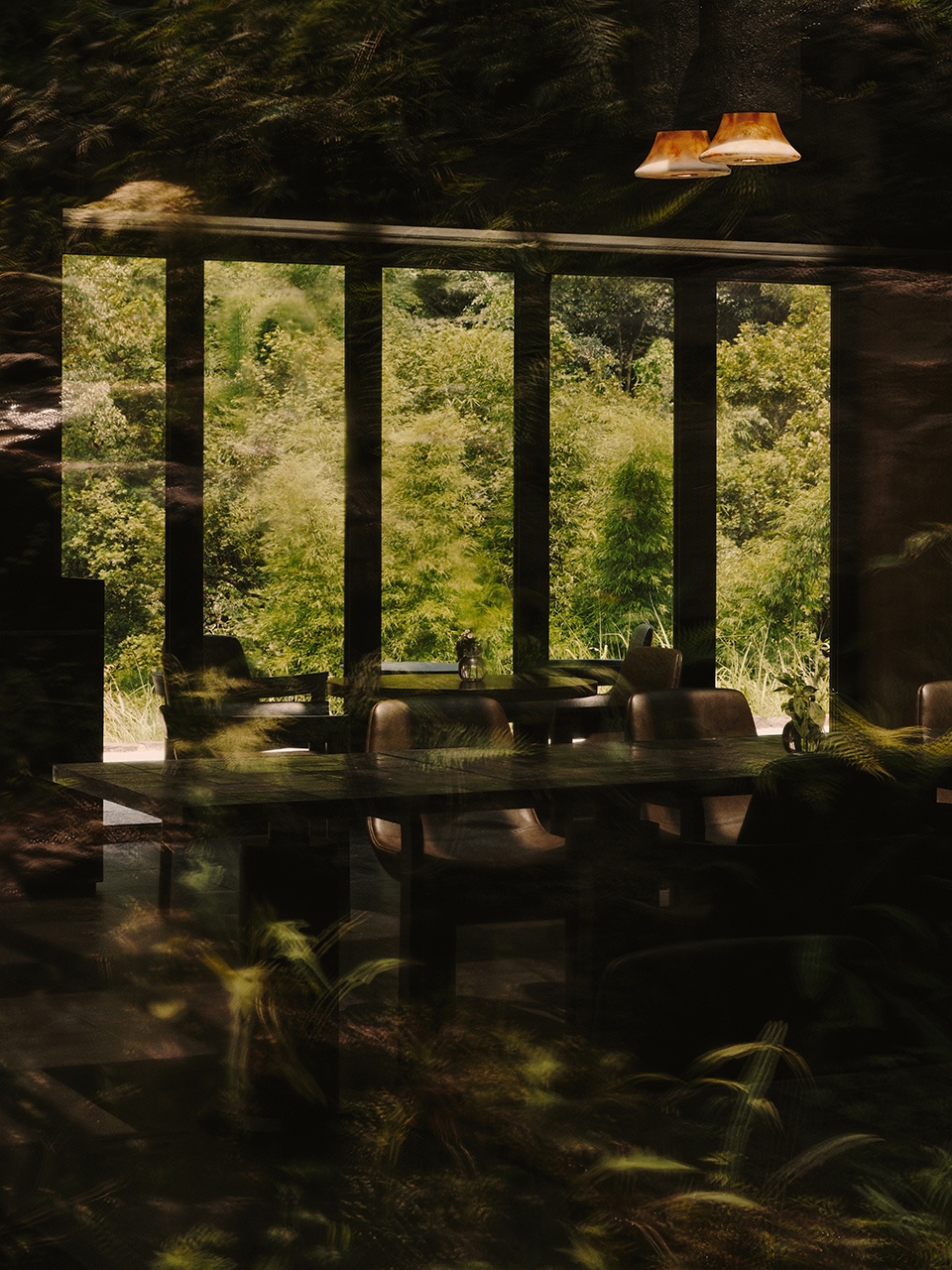 The central courtyard serves as the social core of the resort, an outward-looking space where nature and architecture converge against the majestic mountain backdrop. At its centre stands an ancient Zhennan tree, encircled by a reflecting pool. As the valley’s oldest and tallest tree, it becomes a silent guardian—anchoring the experience in history and continuity.