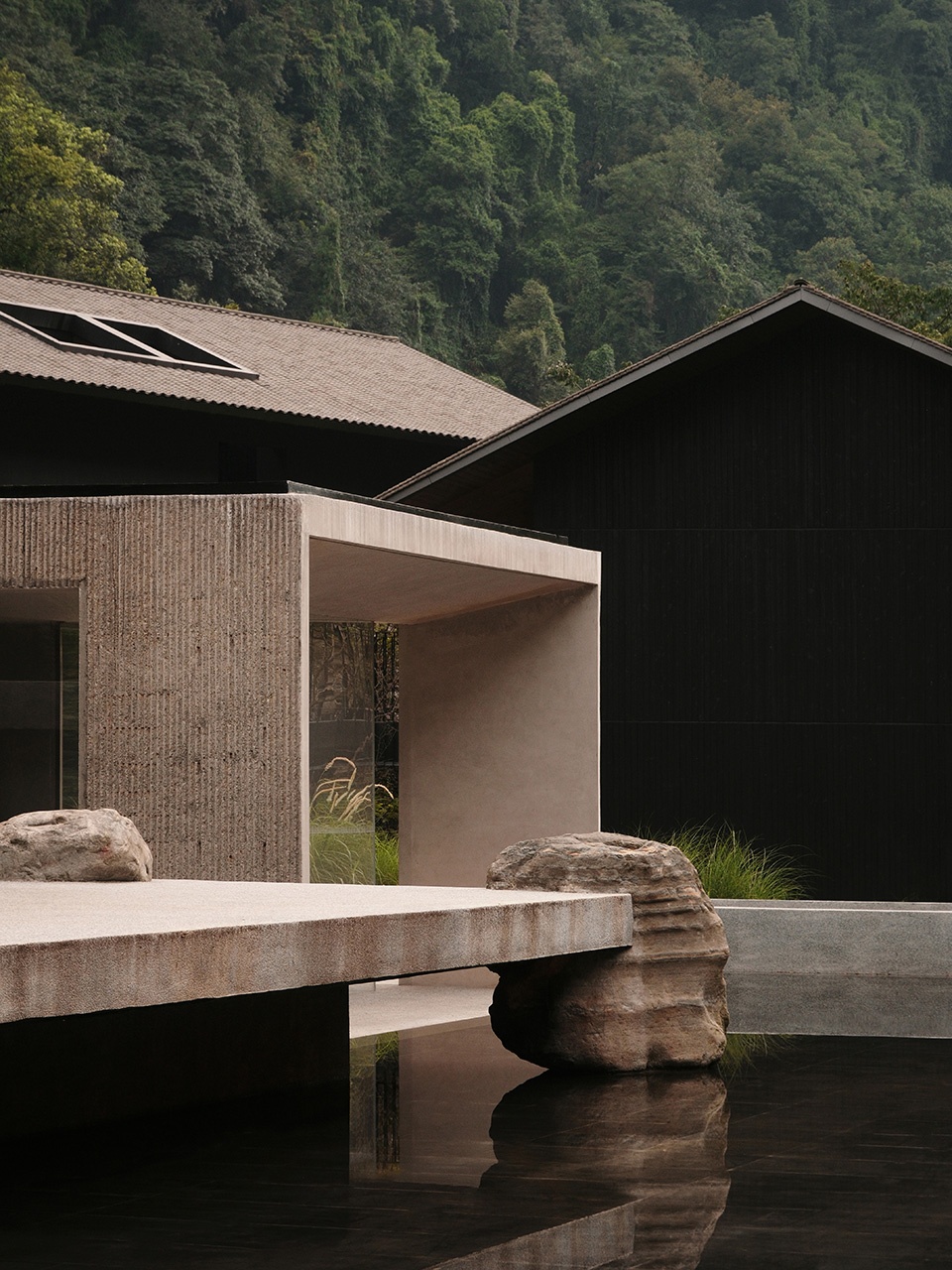 The architecture draws inspiration from the site’s terrain and cultural heritage. Buildings are arranged in a staggered, village-like composition, recalling stone dwellings nestled into the hillside. Traditional pitched roofs and deep eaves are reinterpreted with a contemporary sensibility, bridging past and present. With its landscape-first approach, restrained material palette, and poetic integration of tradition and modernity, ZOLAND·Emei Resort is conceived not merely as a hotel but as a secluded haven—an environment that encourages reflection, slowness, and a renewed dialogue between people and the land.