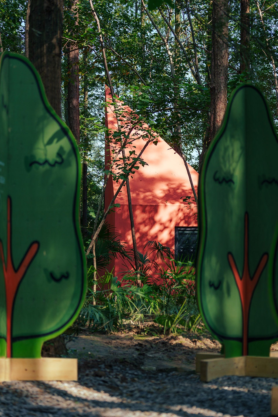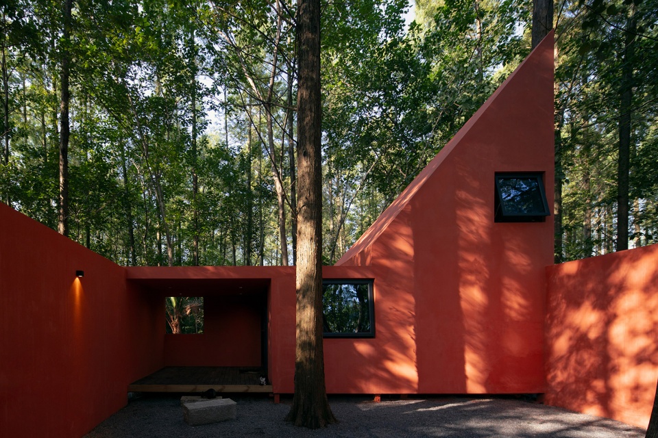如果你愿意,可以在喜欢的任何地方惬意安居。探索荒野之家的无数种可能,一直是个个世界的愿望,朋友们的幻想带给了我们太多灵感,让每个回归自然的朋友都可以找到自己的故事。森林里也有舞蹈家,不介意把房子刷成红色,纯粹的、彻彻底底的红色。红色的空间仿佛是森林里的剧场,水杉树和棕榈树是舞台上的舞者,随风而动。舞蹈家说,荒野之家不妨纯粹和热烈一次,喜欢被远远的看见,也享受狂喜之后的静谧,只有自己知道。