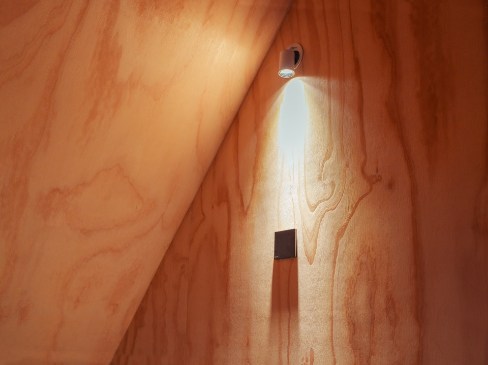 个个世界一直致力于通过自然地建造回归自然生活,“红磨坊”延续了这样的自然野居试验,跳出面积大小的思维惯性,将注意力放在居住行为和环境的关系,空间的答案一定与日常的居住体验相距甚远,甚至有些偏执。“小”会让人离材质更近,因此我们变得更加敏感,既然已经来到了森林,不妨光脚待上一天,听一听枯树叶在露台上被踩碎的声音。