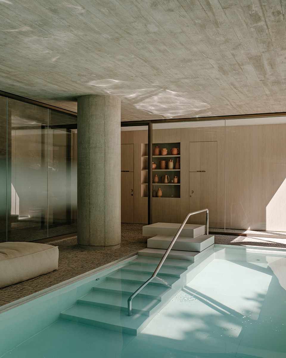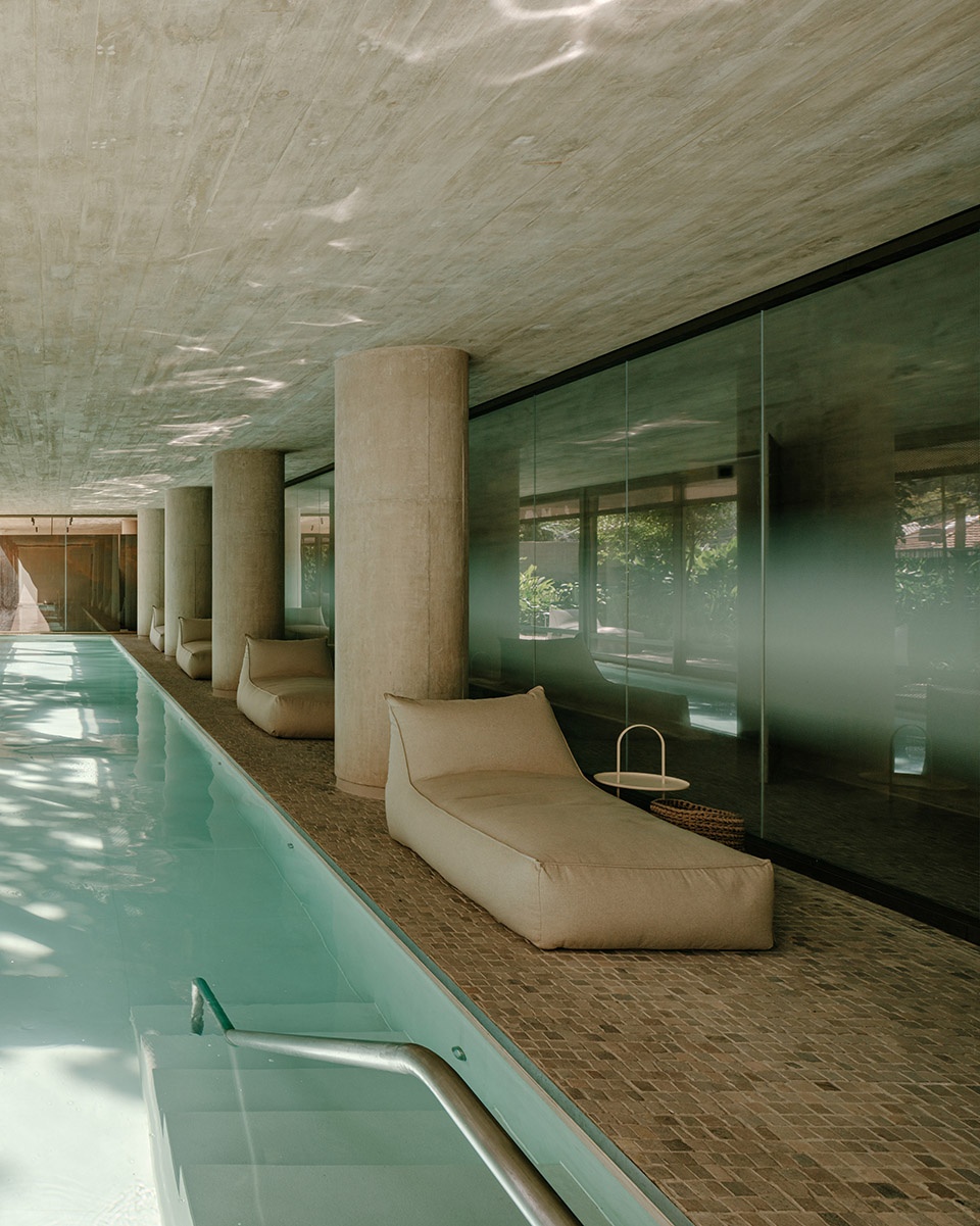 在可持续策略方面,项目整合了多项节能与环保措施,包括用于泳池加热的太阳能板、水资源再利用系统,以及电动车充电基础设施。对流通风设计与景观在热环境与视觉系统中的深度参与,进一步强化了建筑的环境效率。