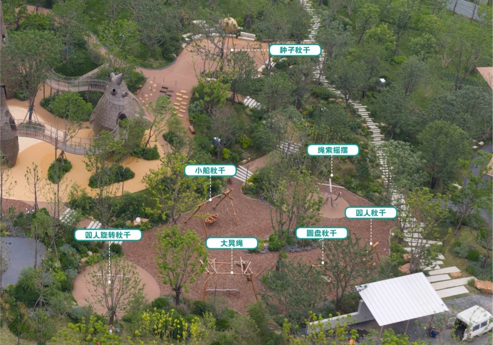 ▼场地划分为种子树屋、奇妙森林塔、纤维重组网床、秋千博物馆、加速进程平衡车赛道五大核心区域,