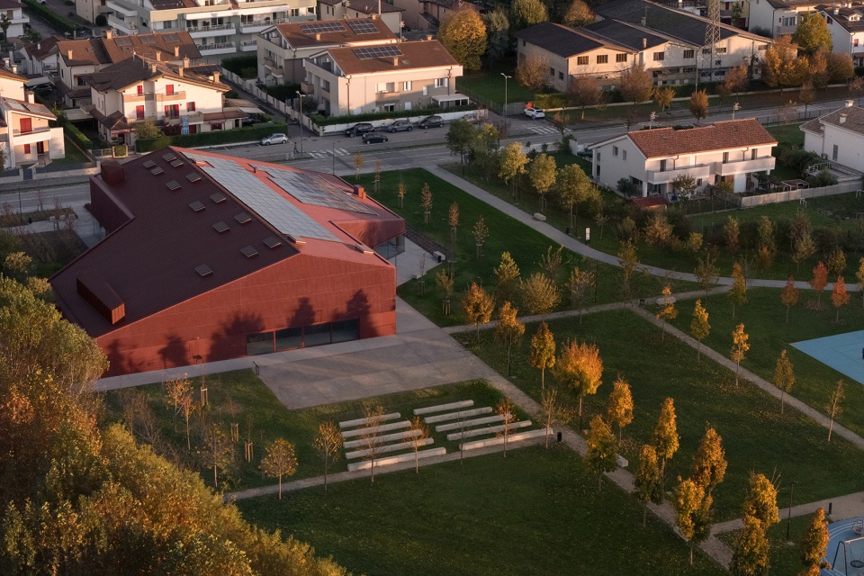 Albignasego Auditorium Theatre was born from the ambition to reinterpret the historical memory of the local rural houses through a contemporary lens, translating the texture of their brickwork into a modern cladding that gives the building a strong and recognizable identity. In this way, the architecture not only establishes a dialogue with the surrounding landscape and the scale of the adjacent urban fabric, but also narrates the history of the place through a contemporary language.