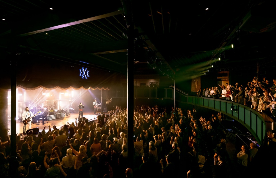 A radially laid out original wood ceiling in the space serves as a testament to the skilled carpenters of the 1890s. Custom-designed upholstered balcony seats and upper-level lounge areas, referred to as the eastern and western “hay lofts,” work in tandem with the large, open ground floor which accommodates raucous standing-room-only shows to more intimate, seated events.
