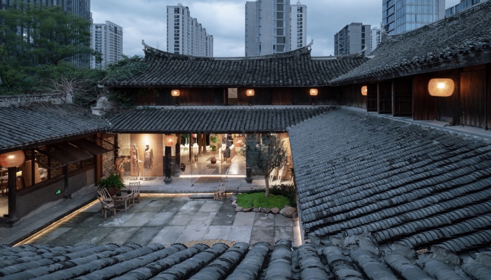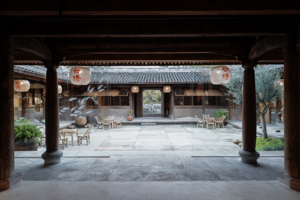 TaiSilk Courtyard is located in Jiazhi Street District, the Zhou Residence is a historic Jiangnan-style courtyard complex featuring a traditional three-bay main hall flanked by two wing rooms and a single-story gatehouse, collectively enclosing a central quadrangle stone courtyard. The spatial organization follows the “Main Hall-Wing Rooms” typology, with a combination of hip-and-gable and flush gable roofs, all encircled by overhanging eaves. As a representative vernacular dwelling of the Taizhou subregion in the Wu cultural area, its generous courtyard scale lends itself to conversion into public or commercial spaces. The second floor, originally used for storage or living quarters, features a central ceremonial space above the main hall. The design team developed an adaptive reuse strategy that respects the original timber structure while accommodating new programming.