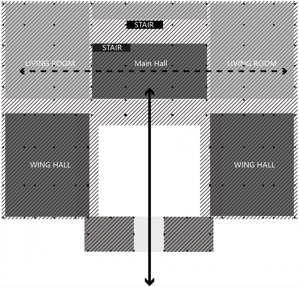 ▼改造后一层空间横轴流线室内穿行层次,Transverse Flow– Layered Indoor Passage
