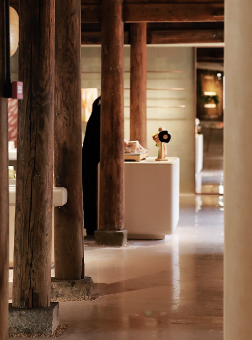改造与内容的最终呈现中,我们可以用新古拼贴,润物无声,工法互意,自然赋形来概括其整体的氛围与品质。由于改造更新项目中往往存在现场建筑结构与图纸有大量出入的情况,因此整个设计与施工的过程中需要不断的调适。业主与我们在对于艺术效果的追求和商业运营需求的平衡的讨论中,落地也是一个充满即兴构建的经历,包括利用拆除材料重新组合拼凑完整界面。在新的技术工艺参与中,时间的痕迹与空间形制的记忆也都得到了保留。