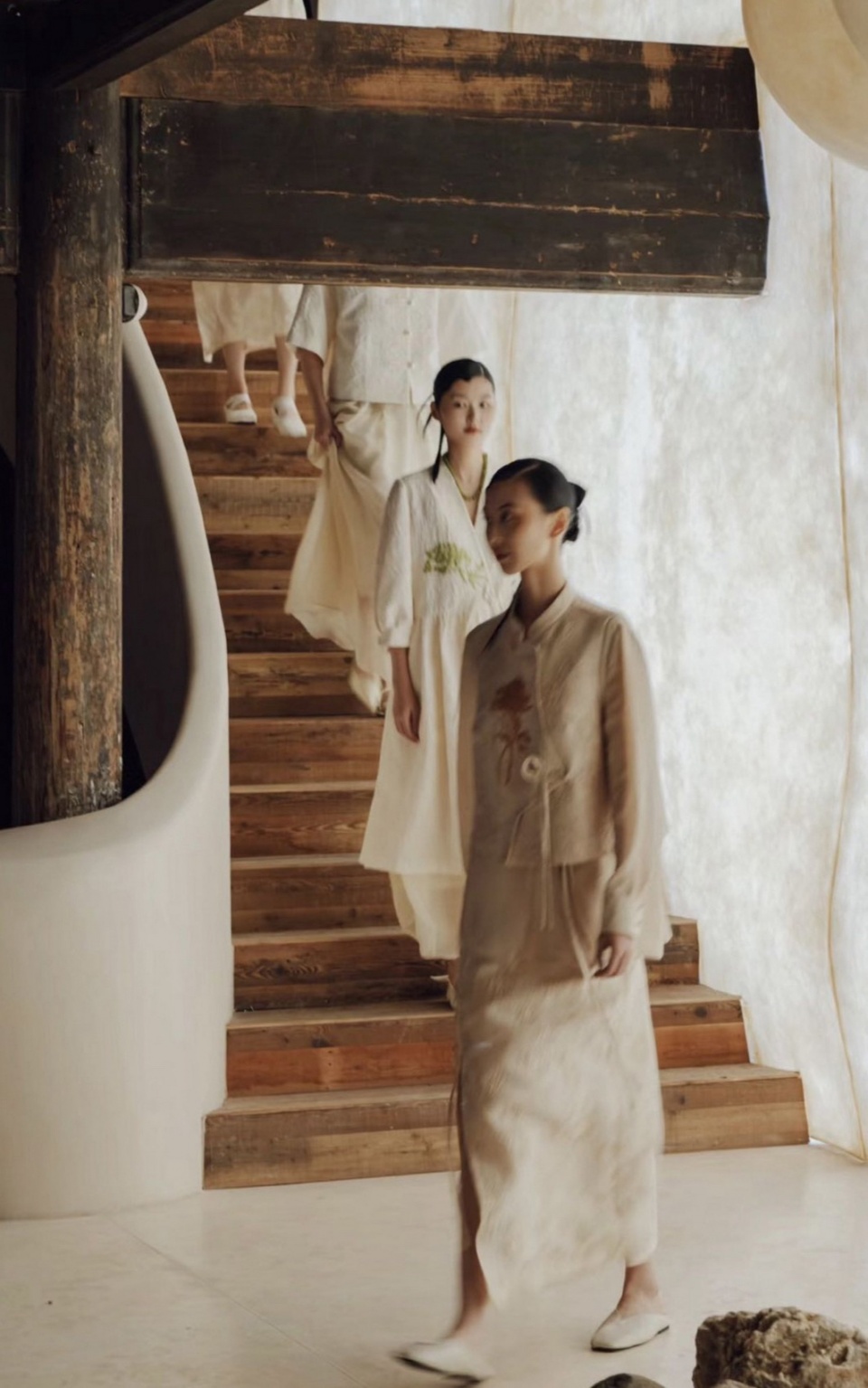 Taizhou embroidery techniques—pulling, carving, perforating, wrapping, twisting, inlaying—inspired spatial interventions. The project adopted an inward-focused methodology, customizing everything from built-ins (e.g., free-form clothing racks) to translucent wall panels with bespoke linen textures. Collaborative improvisation resolved on-site discrepancies, repurposing demolition materials for new finishes.