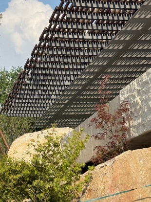 Within the material system of the Wisteria Pavilion, weather-resistant reconstituted bamboo represents a concentrated expression of craftsmanship. As a traditional Chinese building material, bamboo offers advantages such as a short growth cycle, strong renewability, and high structural strength. However, conventional bamboo products often suffer from poor weather resistance, susceptibility to decay, and significant deformation, which limit their outdoor applications. Weather-resistant reconstituted bamboo is produced from 4–6-year-old natural bamboo through a process that includes raw material pretreatment, fiber separation, directional recomposition, and high-temperature, high-pressure molding. This process preserves the bamboo’s natural grain and warm tactile qualities while enhancing its strength, durability, and stability. As a result, the material achieves internationally leading performance across four dimensions: renewability, low-carbon environmental performance, outdoor weather resistance, and material strength.
