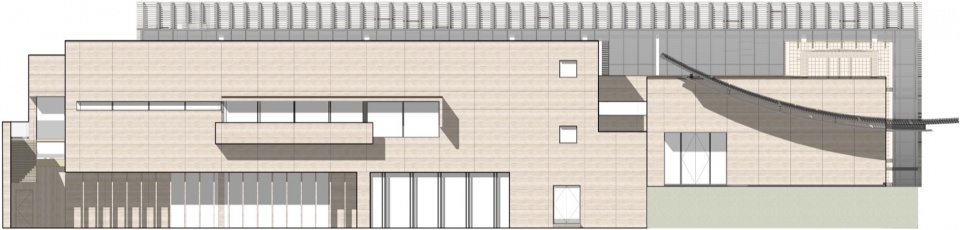 紫藤驿站从在地传统民居的屋面与屋脊形态中提取核心元素,将“低姿态布局”、“曲线脊线”等传统基因转化为适应现代功能需求的建筑形态。建筑临紫琅湖一侧采用曲面屋顶,屋顶向湖面缓缓伸展,形成柔和的水平线条,保持了传统民居“低姿态”生态适应性,诠释了“谦逊的融入环境”的设计理念。曲面屋顶能够引导气流沿屋面平滑流动,减少风荷载对建筑的影响,充分体现江海气候的适应性。屋顶顶部微微上翘,与传统民居“水牛角式”屋脊的曲线形态形成呼应,表现紫藤驿站地域记忆的当代性。