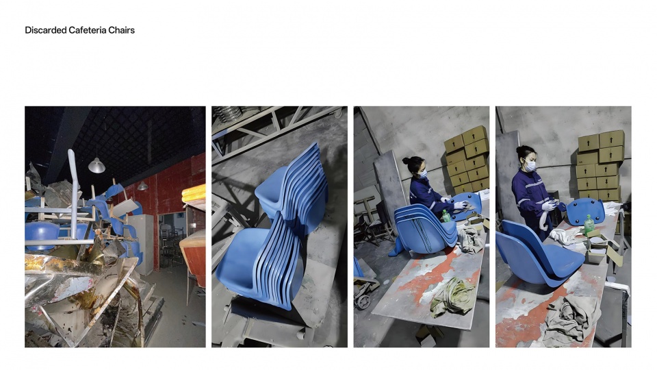 ▼回收废弃餐椅,Discarded Cafeteria Chairs