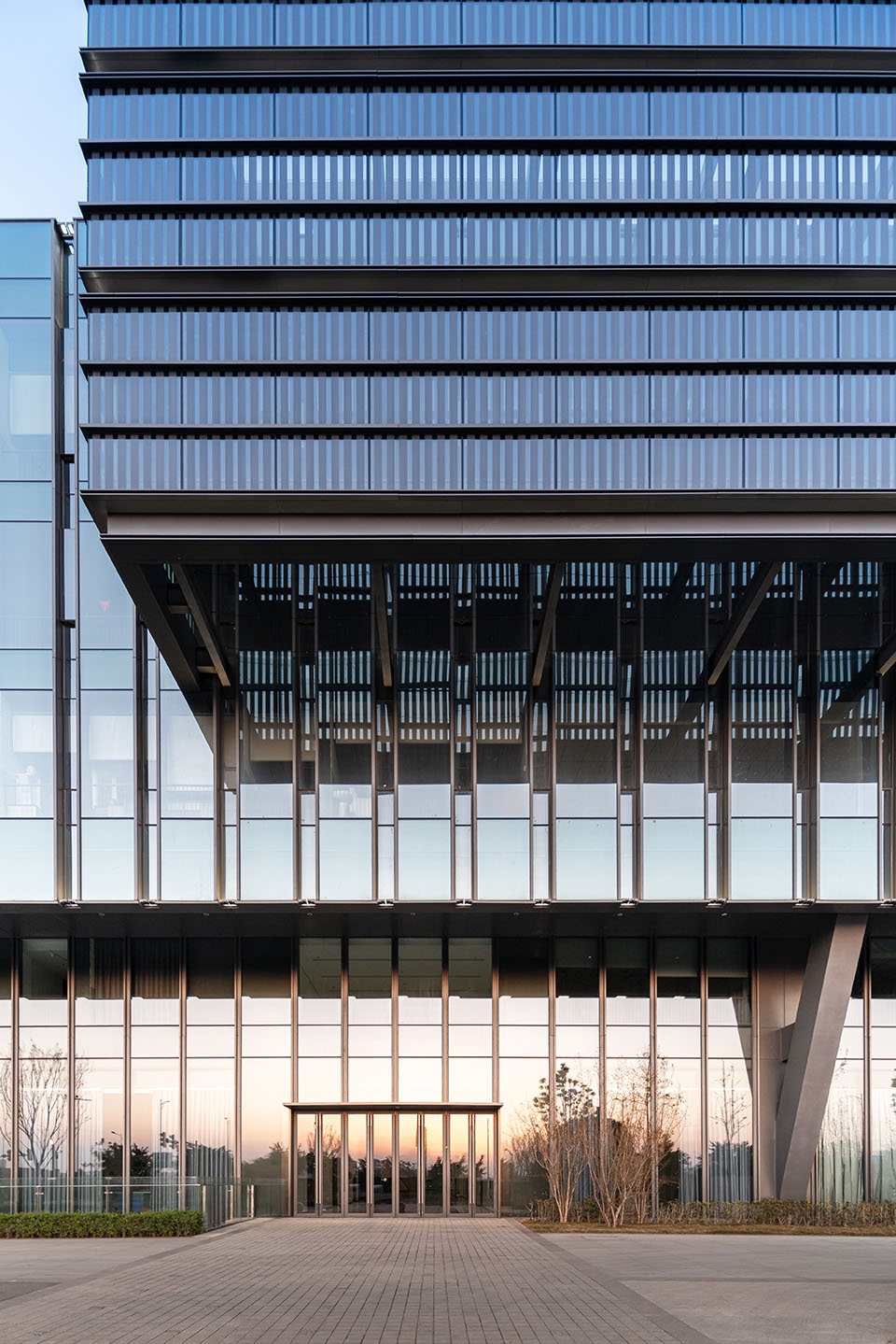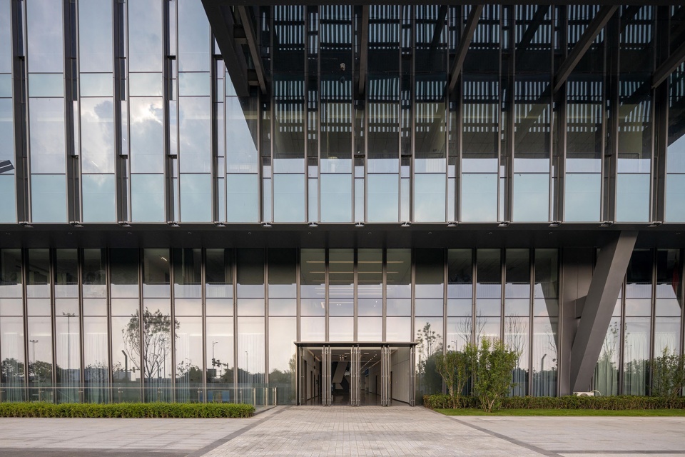 Functionality:The façade is customized according to internal functional needs—high-transparency glass is used in the inspection area to meet laboratory lighting requirements, while Low-E triple-silver coated glass is applied to the data center to reduce solar heat gain.