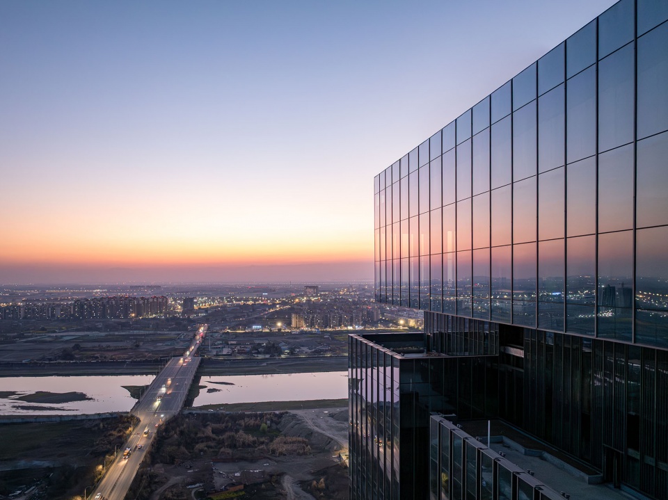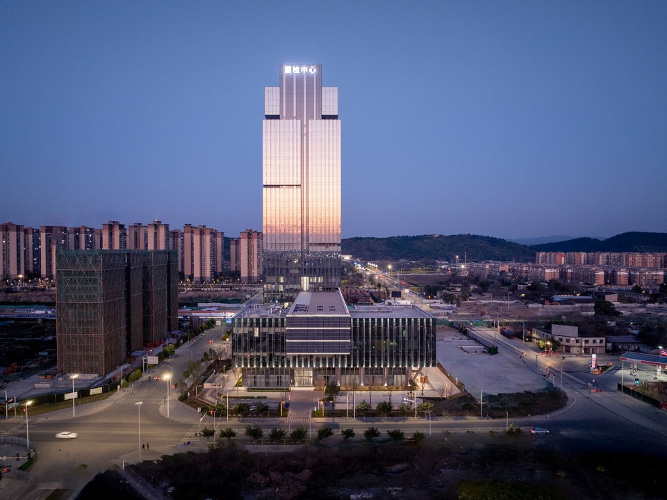 Located in Deyang, Sichuan, and serves as a core initiative under the “Southward Expansion” strategy of Deyang, the project situates at the intersection of major roads in the Economic and Technological Development Zone (Lushan South Road, Tianshan South Road, and Jinsha River Road), which occupies a net land area of only 14,915.5m², yet is designed to accommodate a gross floor area of 82,873.93m² with mixed functions. It not only fills the gap in national-level quality inspection services for Deyang’s heavy equipment industry by serving as a testing hub for “six types of electrical equipment,” but also integrates urban smart governance functions including public security, urban management, health services, and emergency response. With a decorative height of 142.4m, it not only redefines the city’s skyline, but also embodies a dual role in both industrial service provision and urban governance, achieving a breakthrough in enabling a single parcel of land to support multiple strategic functions.