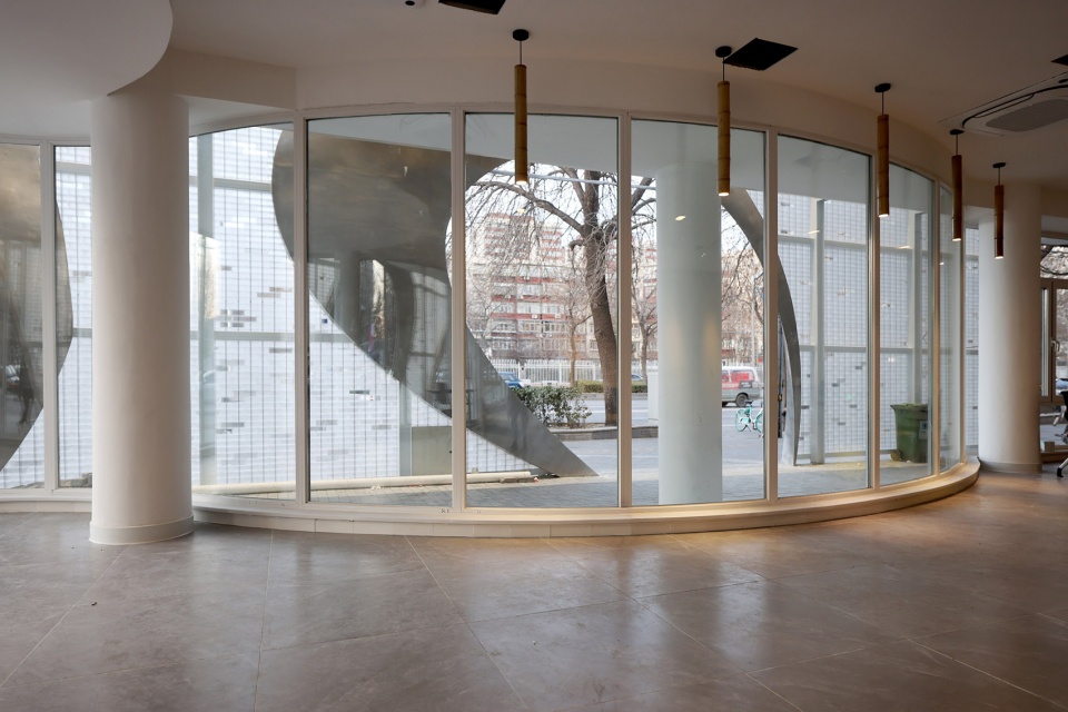 Instead of expensive curtain walls system, aluminum alloy door and window system should be used due to the limit funds, which are not slim or exquisite. However, the location of this street corner is quite important, which needs an amazing brilliant view! And, the original structure cannot support such heavy exterior walls or curtain walls, which makes the decision of exterior facade martial very difficult. Since the curtain wall cannot be used, attention is paid to the brick, which has a deep origin with the local culture of Beijing.