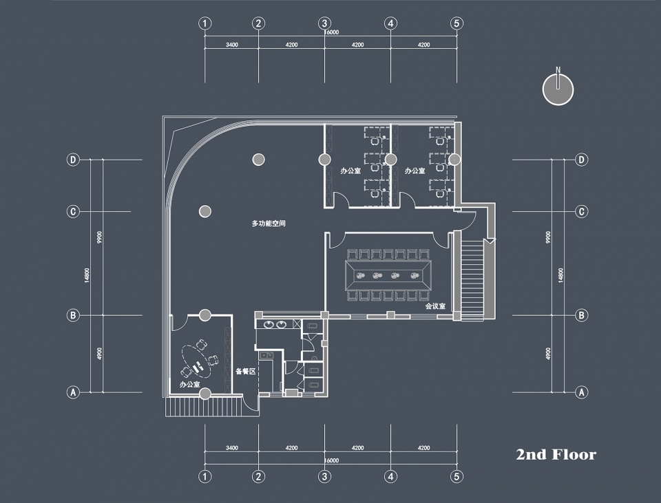 Through the original modified stairs, you can enter the second floor, a snow-white world here. A conference room and a multi-functional hall for public activities are built here. From the multi-functional hall, it is above the 0, which looks like the rising sun in the southeast, which makes the community gain wishes every day!