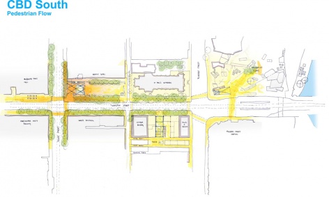 ▼市政厅站人流动向草图,Town Hall Station – pedestrian flow