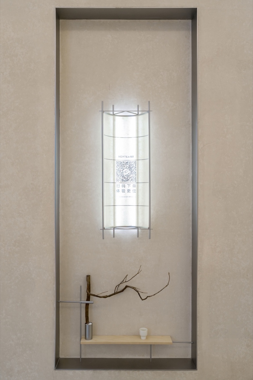 The custom lighting fixtures inside the store are a highly condensed and abstract expression of the lantern imagery. Eschewing complexity, we derived their design from the lantern prototype, creating a series of modern interior lamps and lanterns that align with the concept. With minimalist forms, they engage in a quiet yet powerful dialogue with the space, echoing the traditional artistic conception of “gathering light to drink tea.”