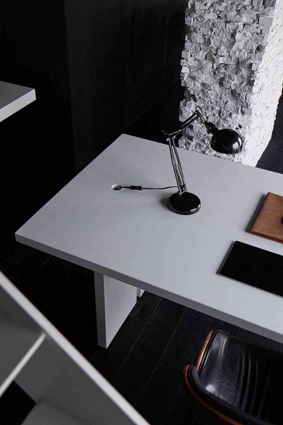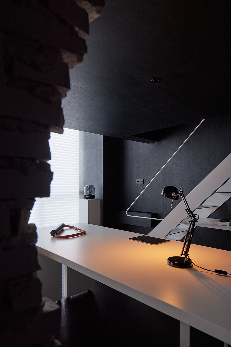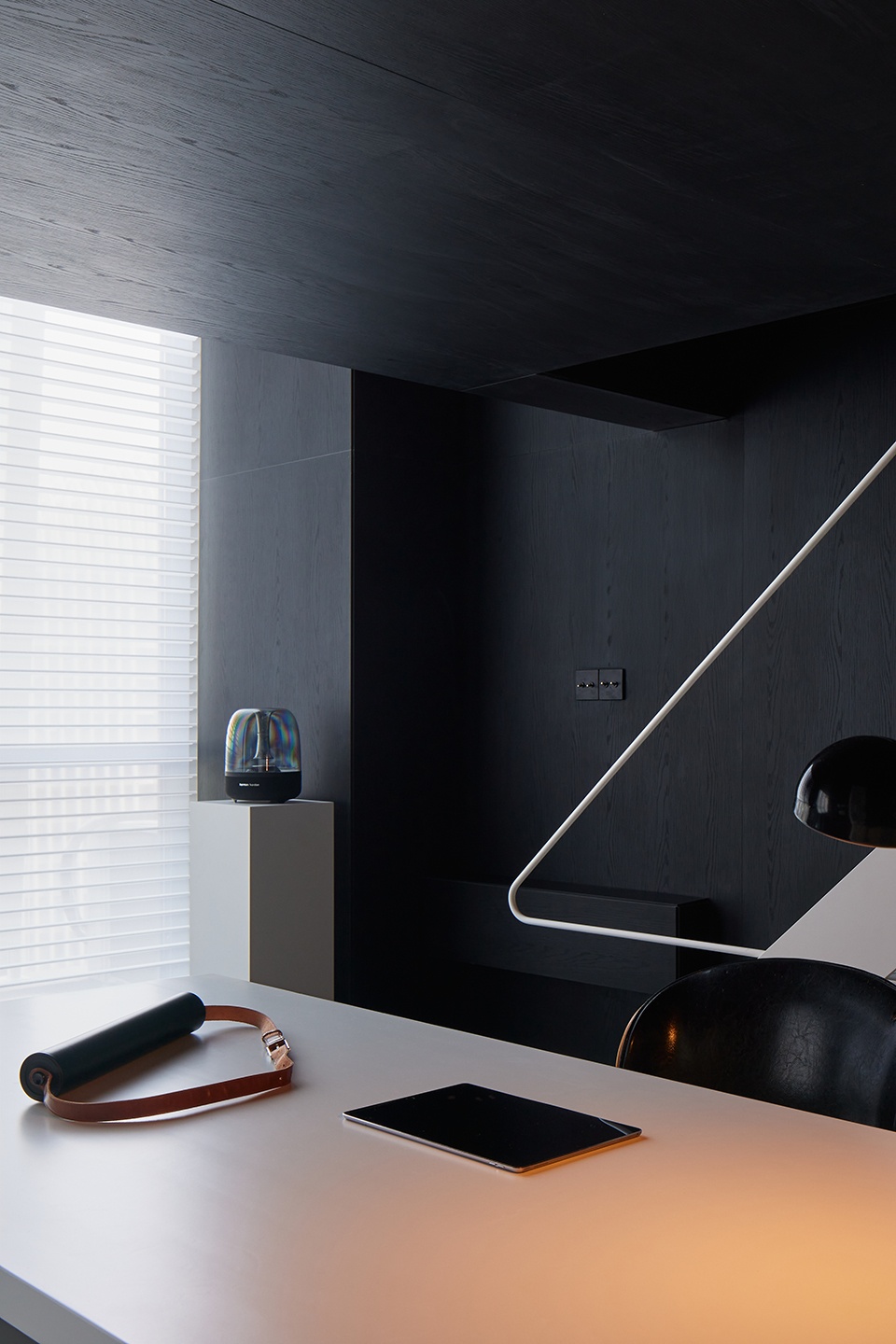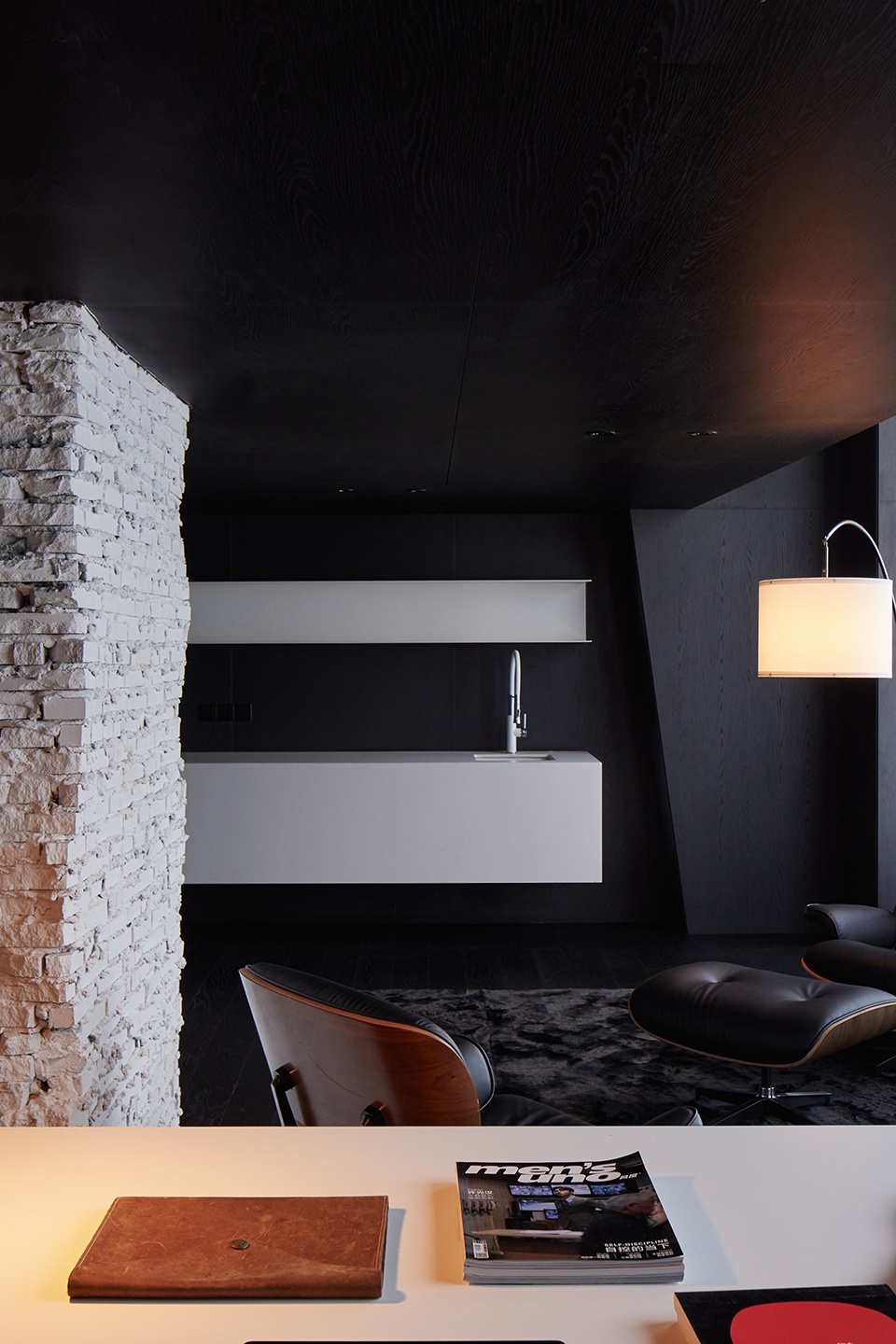 ▼ 黑白材质对比下的空间近景,Space with black-and-white material contrast close view
