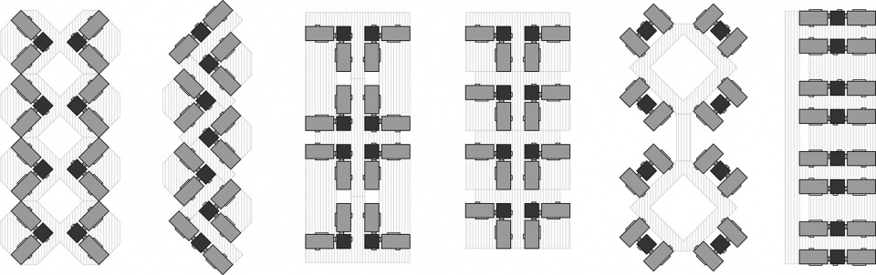 The water module functions as a connecting hub. By linking the living modules to it, a variety of unit layouts can be formed, adding numerous possibilities to the organization of modules. Flexible Unit Types: Both types of modules are equipped with several standardized portals. When used with customized connectors, the modules can be flexibly connected to form unit types of various functions and shapes, such as double rooms, quadruple rooms, suites, public shower rooms, and reception spaces.