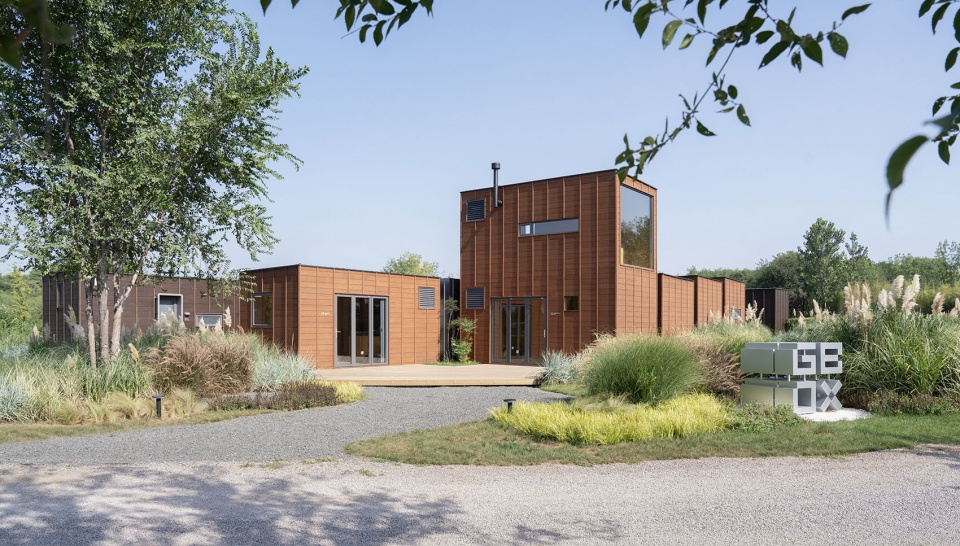 G-BOX is a modular dwelling designed to accommodate demands for living on outdoor campgrounds. Using container architecture as its prototype, we have prescribed two basic sizes for the modules. They are made wider and higher in order to obtain better spacial experience, while still maintaining the characteristics of containers: standardized, prefabricated, and transportable. One module is a rectangular box(6m x 3m x 3m) primarily used as a living module which has simpler mechanical ducts and requires no interior waterproofing work. The other is a cubic box(3m x 3m x 3m) mainly serving as a water-using module which has more complex mechanical ducts and requires interior waterproofing work.