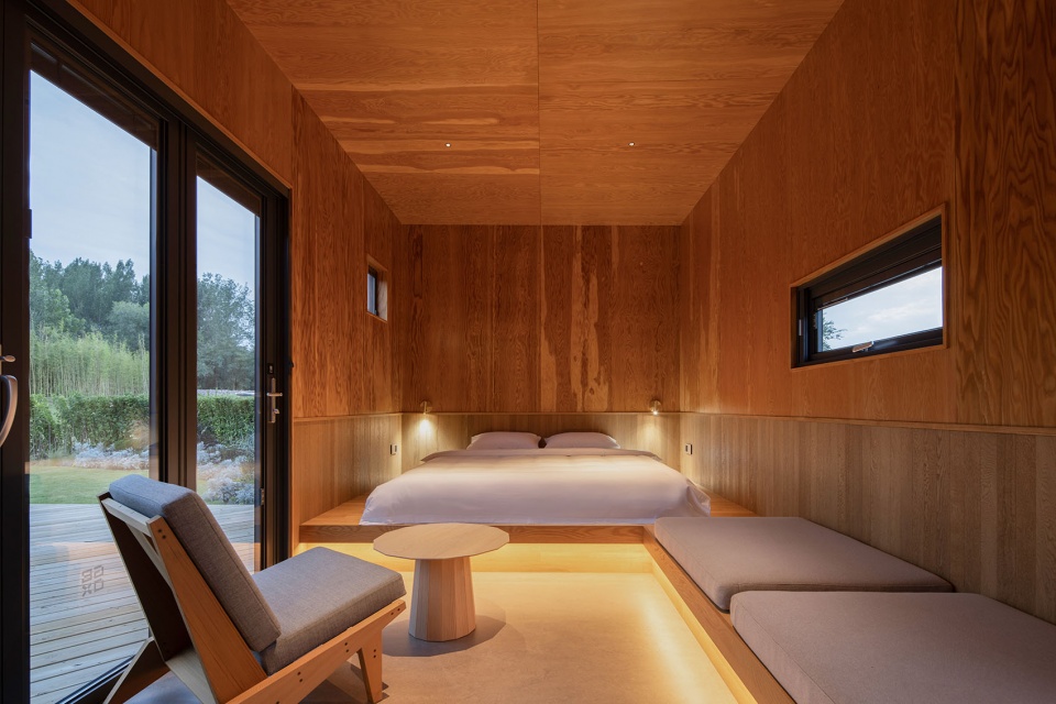 The scheme adopts a nature-friendly and sustainable approach. For the exterior material of the modules, heavy bamboo is extensively used. Compared with ordinary wood, heavy bamboo boasts higher strength, better weather resistance, faster growth rate, and superior carbon sequestration capacity. It is also a biodegradable material. The low height and scattered layout also allow the modules to blend better into the natural environment. The foundation of the modules resembles the sleeper structure of railway tracks. It consists of prefabricated concrete strip components placed on rammed earth foundation, enabling quick installation and removal, minimizing damage and disturbance to the natural site. No hardening work is done on the entire site. Both the modules and plank roads are elevated, which does not affect the rainwater filtration and the “breathing” function of the site soil. The modules and their foundations can be relocated and reused, maximizing the lifespan of the building and reducing potential construction waste left in the environment in the future.