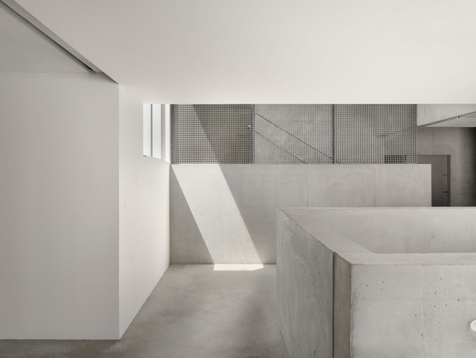 ▼混凝土内庭与斜射日光,concrete inner courtyard with angled sunlight