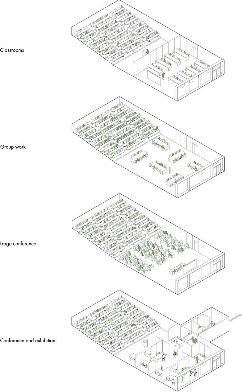 ▼可折叠隔墙打开后的阶梯教室,Lecture hall with folding partitions opened