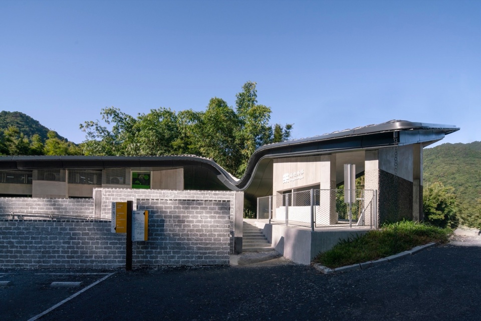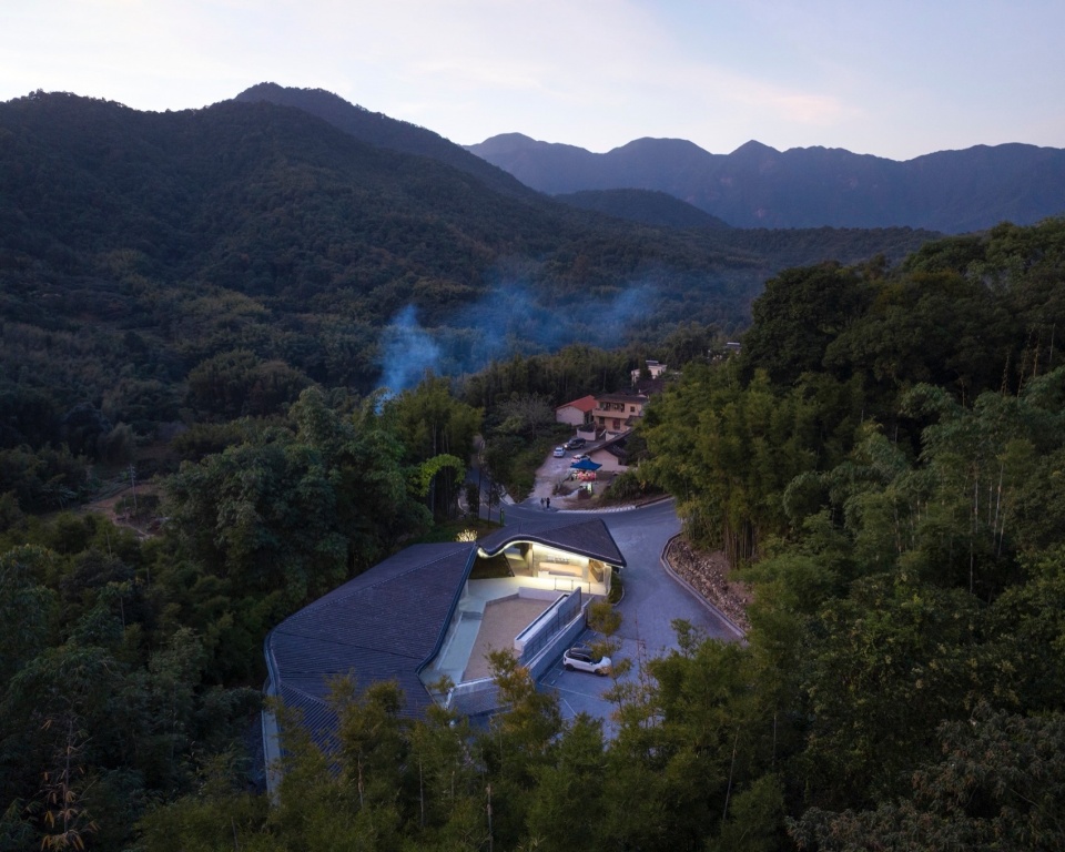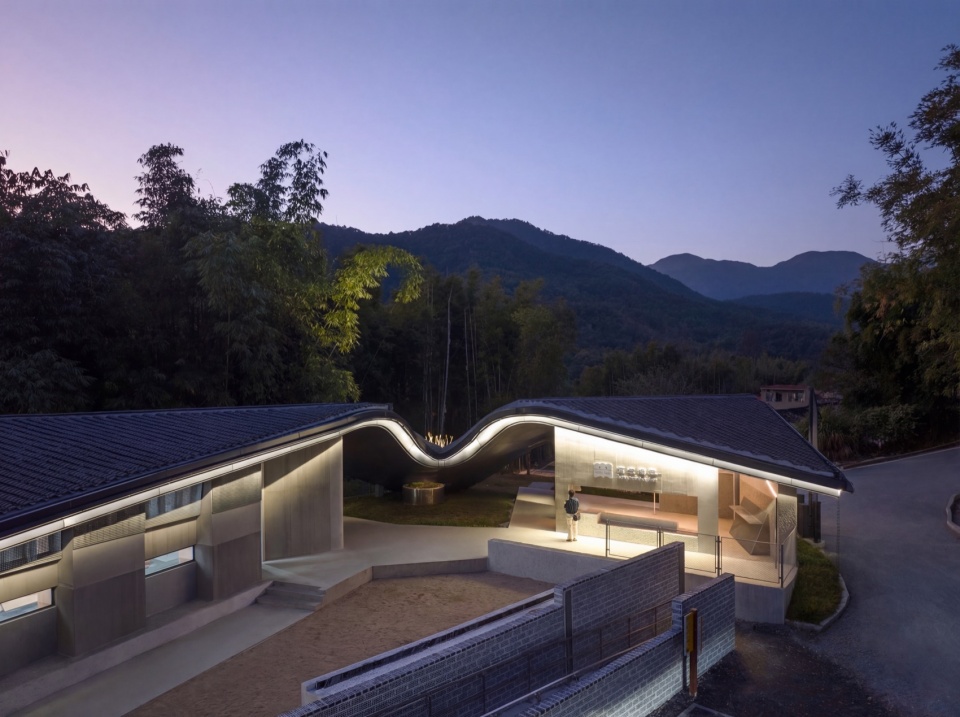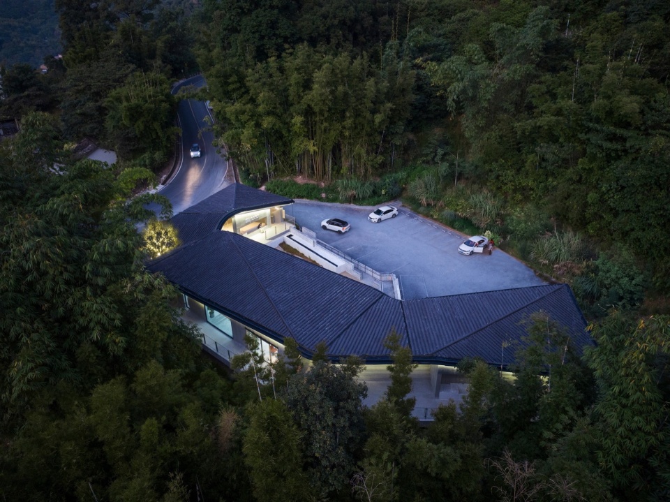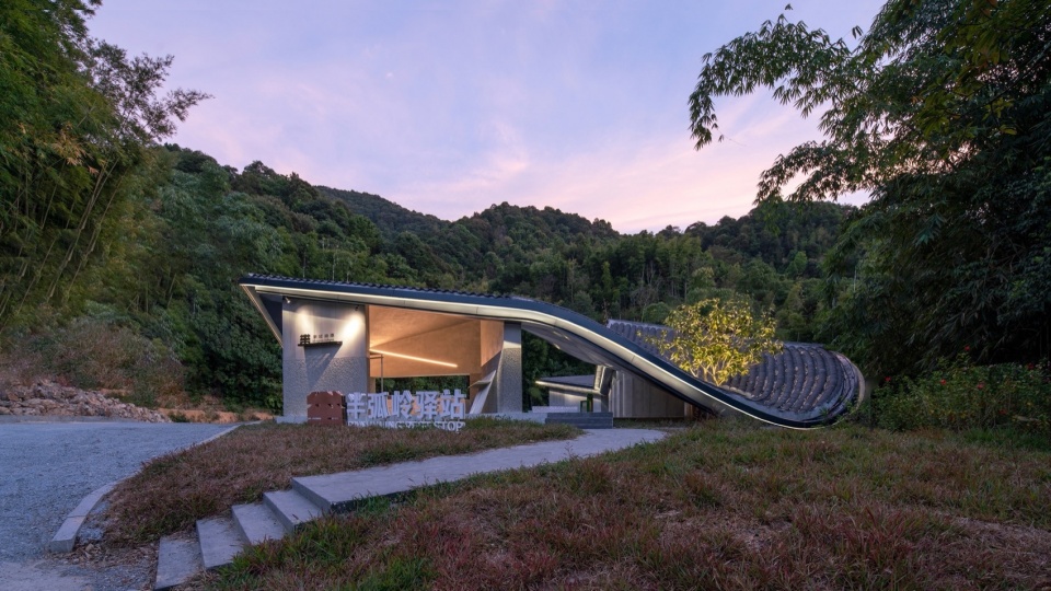 The post station is nestled at a hairpin bend of Banhu Ridge, where the site conditions are highly challenging: adjacent to a highway on one side and flanked by steep slopes and dense bamboo forests on the other. By cleverly leveraging this unique terrain, the building unfolds along the curve of the bend, not only conforming to the alignment of the highway but also resolving the elevation difference of the steep slopes through cantilever design. The natural barrier formed by the surrounding bamboo forests endows the post station with a serene ambiance of “being hidden in the mountains”, while the golden trumpet tree piercing through the roof serves as a visual focal point, infusing vitality into the rugged landscape.