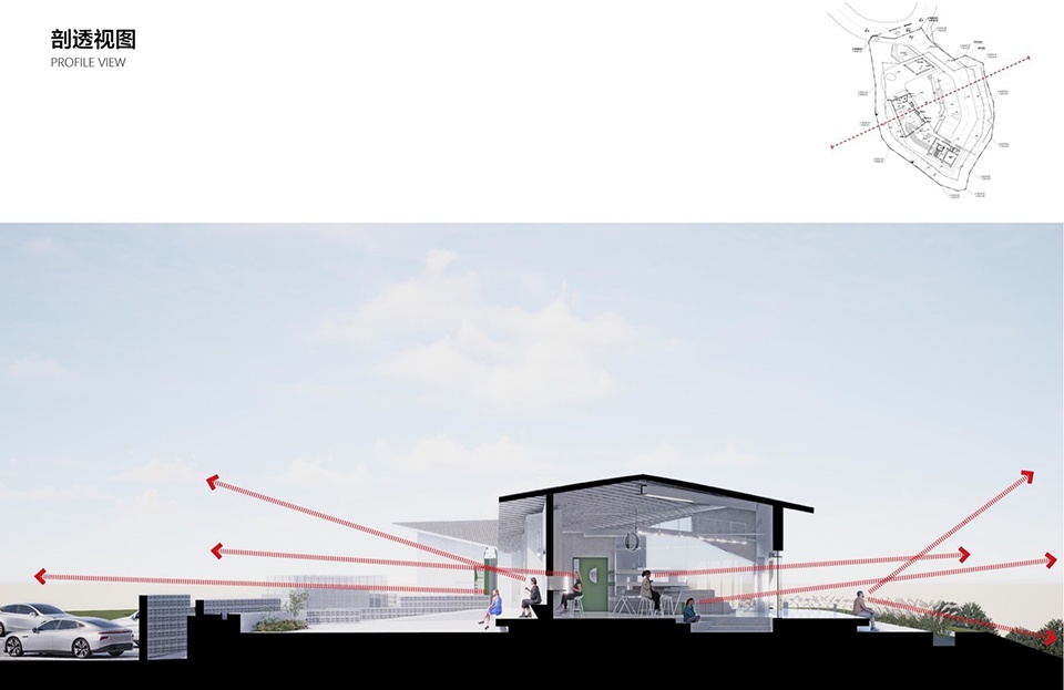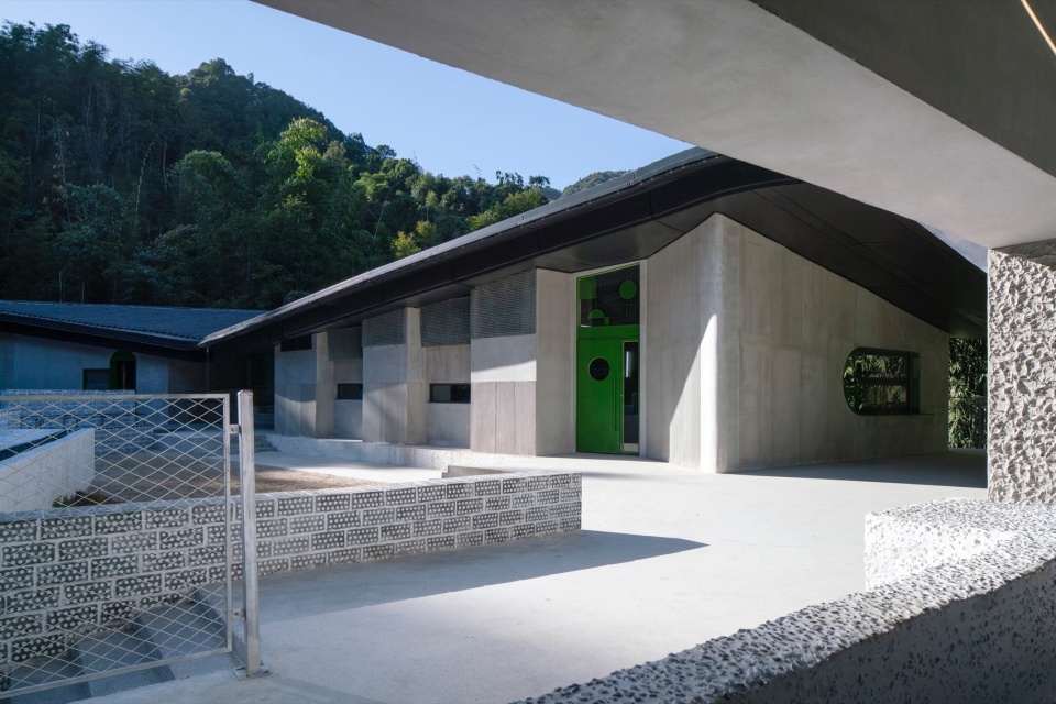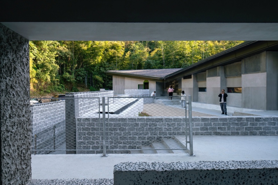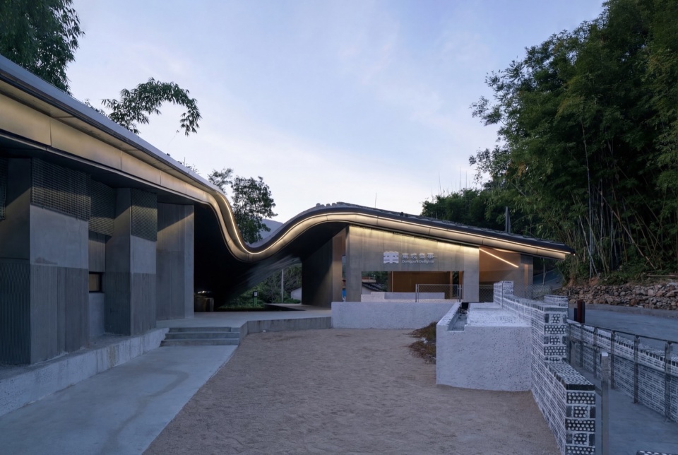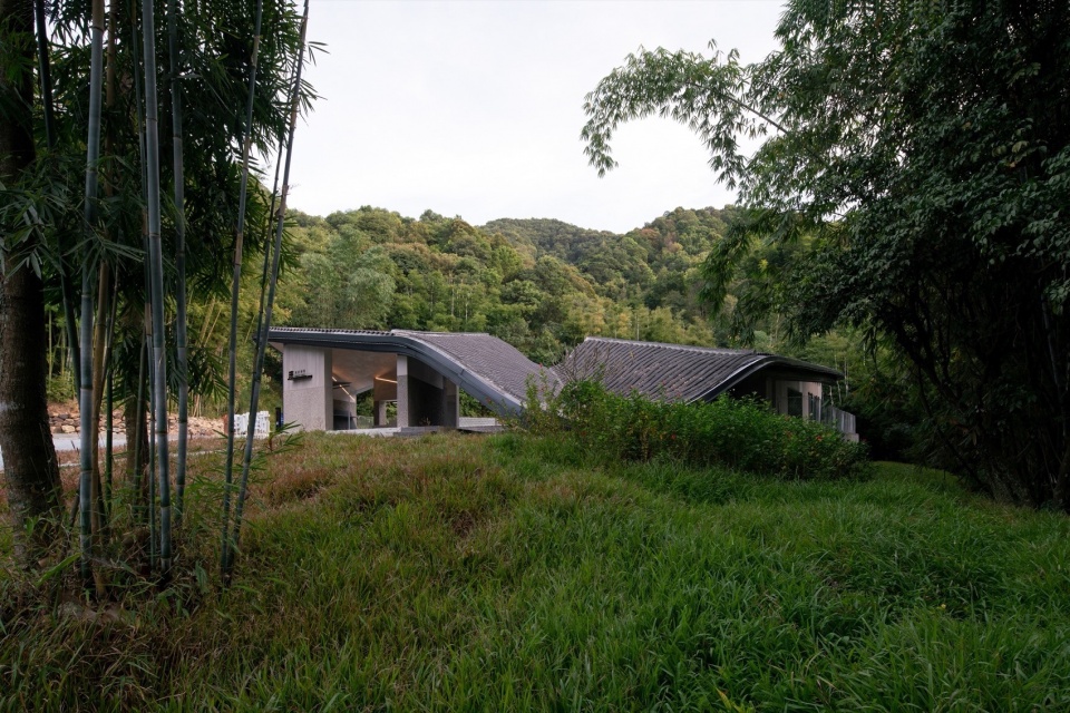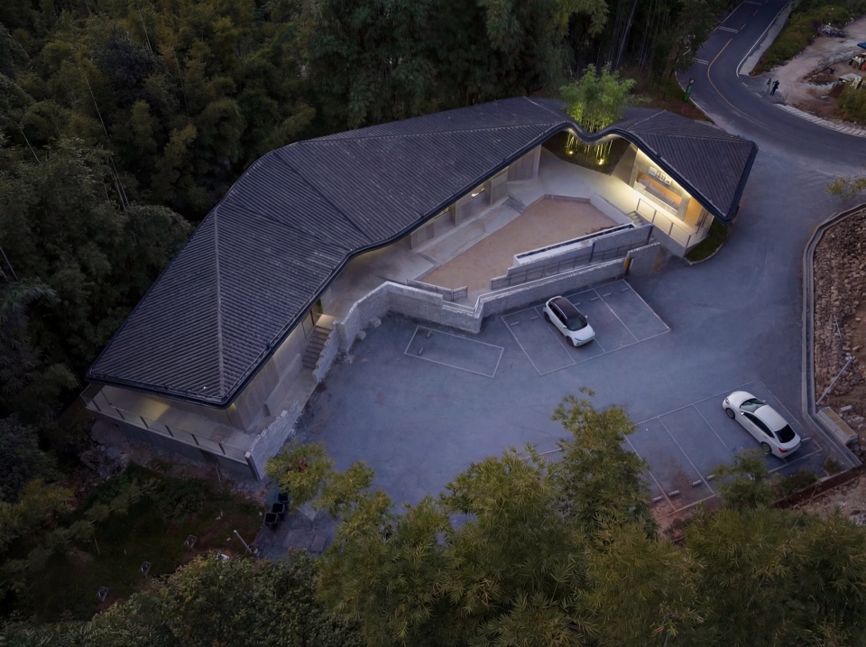 The post station is nestled at a hairpin bend of Banhu Ridge, where the site conditions are highly challenging: adjacent to a highway on one side and flanked by steep slopes and dense bamboo forests on the other. By cleverly leveraging this unique terrain, the building unfolds along the curve of the bend, not only conforming to the alignment of the highway but also resolving the elevation difference of the steep slopes through cantilever design. The natural barrier formed by the surrounding bamboo forests endows the post station with a serene ambiance of “being hidden in the mountains”, while the golden trumpet tree piercing through the roof serves as a visual focal point, infusing vitality into the rugged landscape.