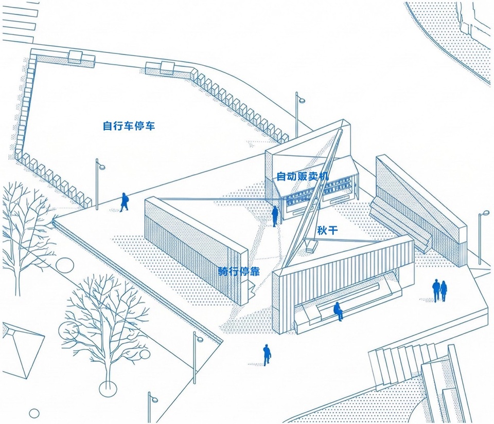 ▼轴测功能(骑行停靠点),axonometric program diagram (bike parking)