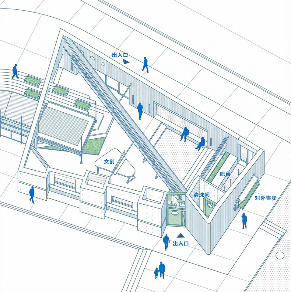 ▼轴测功能(咖啡),axonometric program diagram (café)