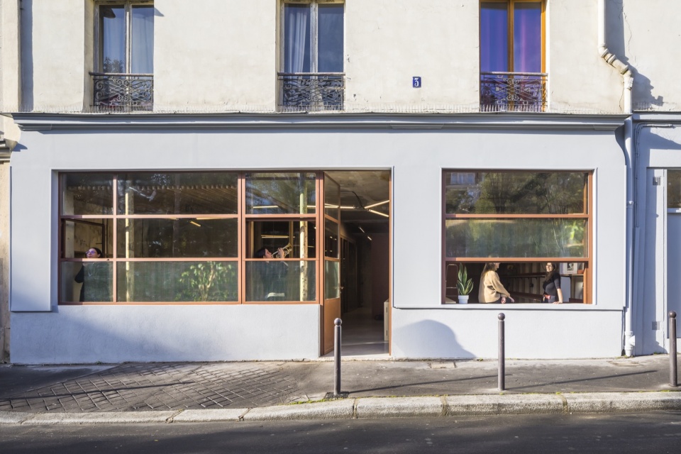 Located in the heart of the Belleville district, yet set back in a quiet dead-end, the space had a sealed façade that deprived the interior of daylight. Behind the blind walls, the outline hinted at the former presence of large windows, now buried within the masonry. The first step of the project was therefore to reopen the entire façade: expansive windows restore the original transparency and now flood the spaces with natural light.